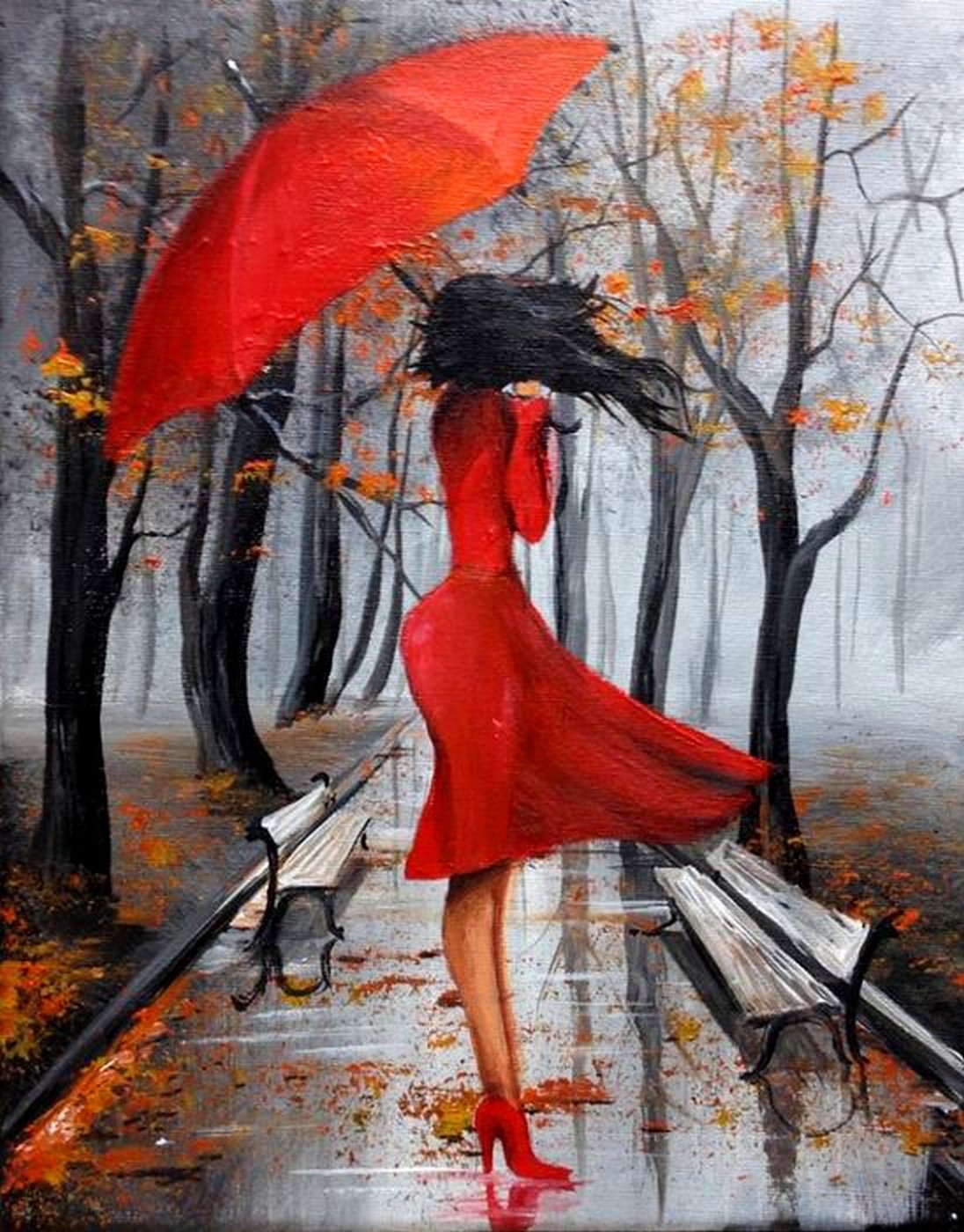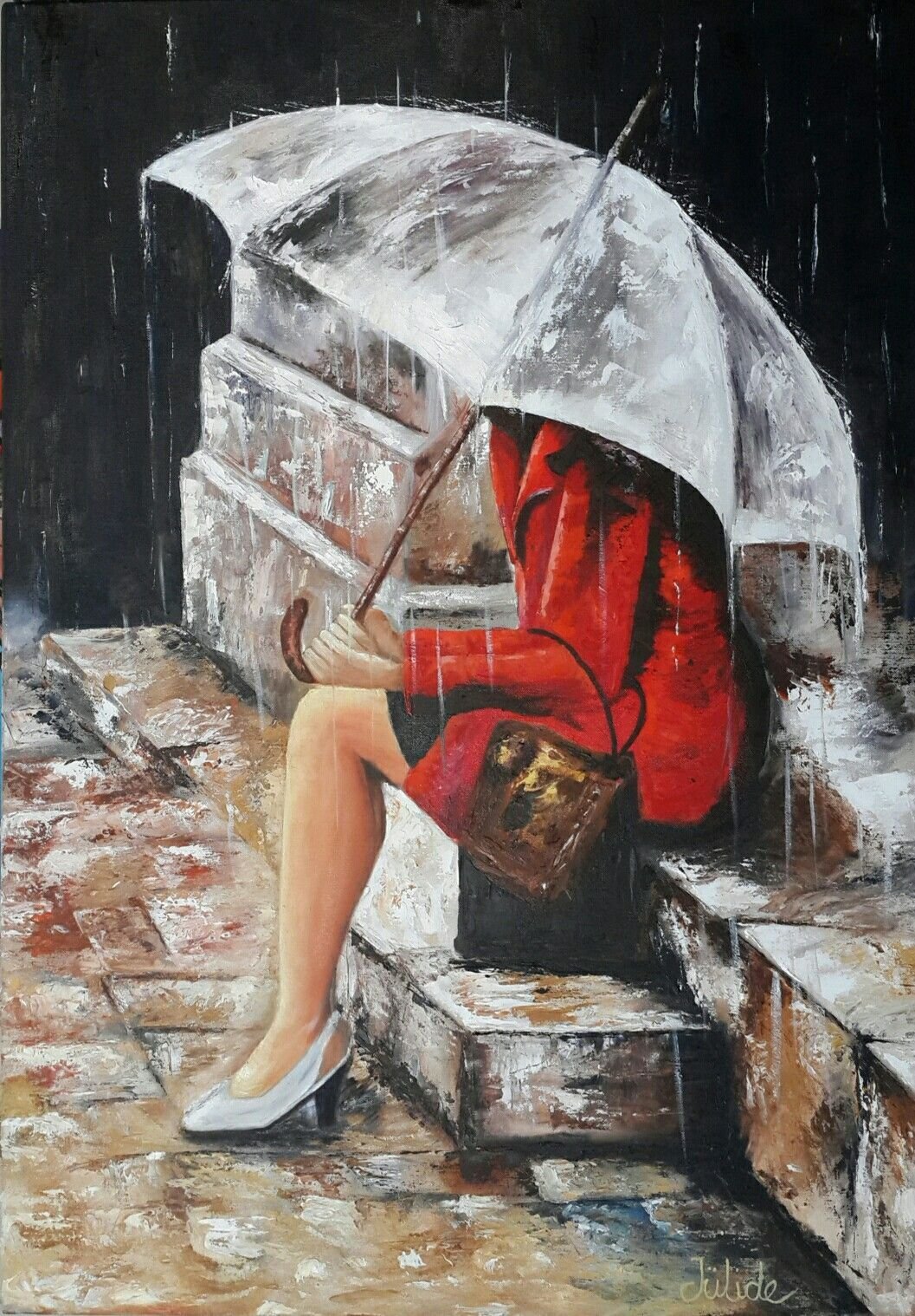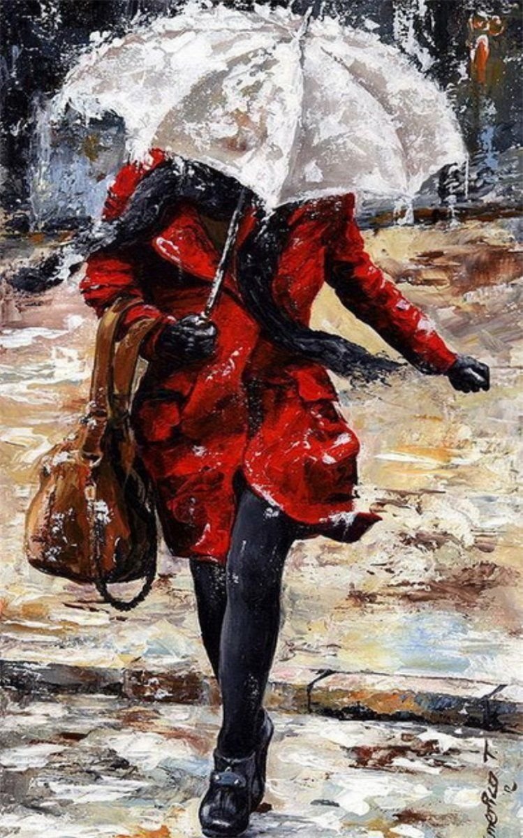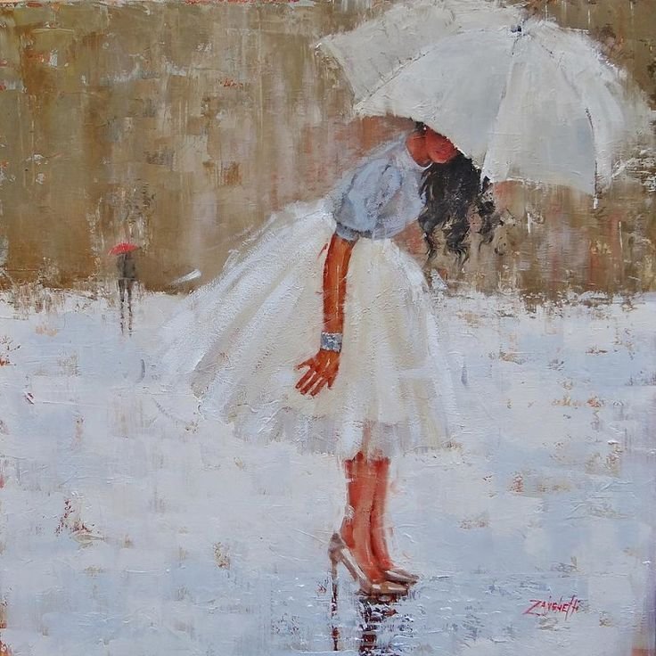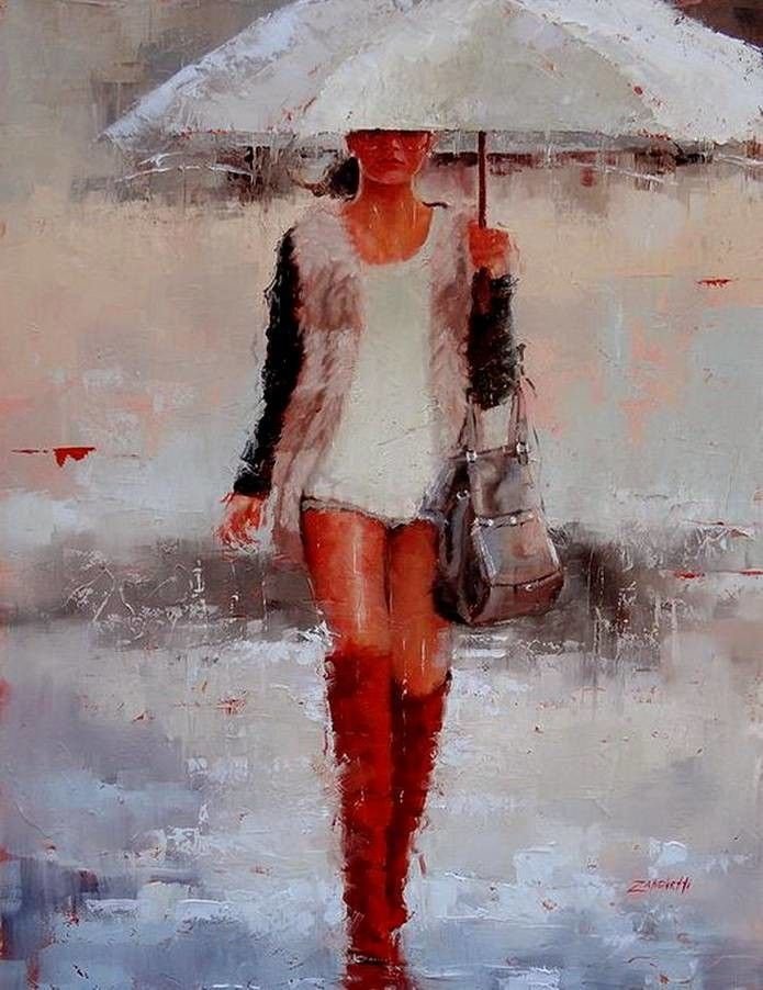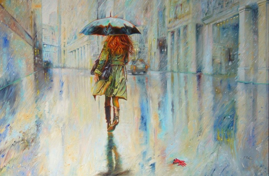 Девушка под дождем живопись