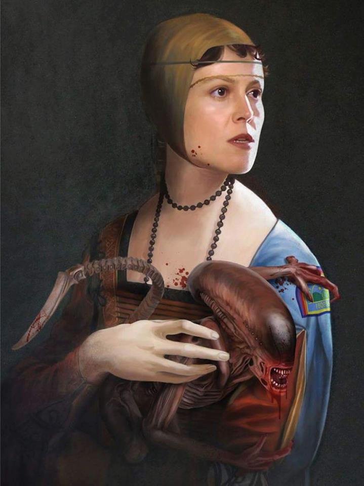 Сигурни Уивер девушка с горностаем