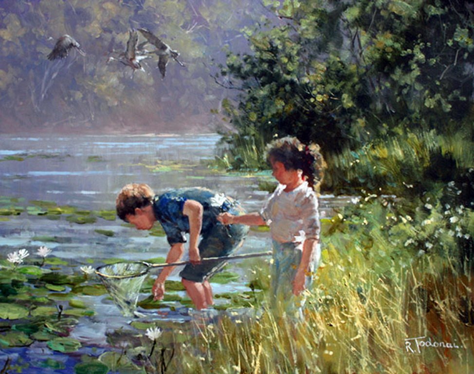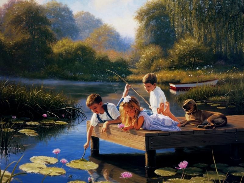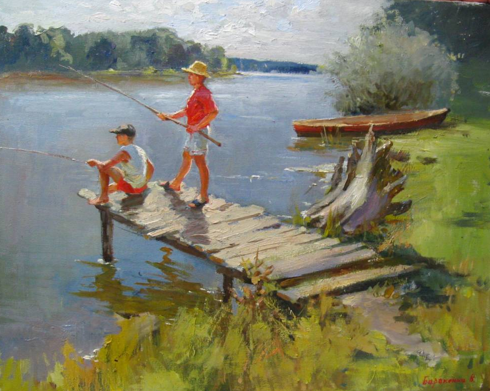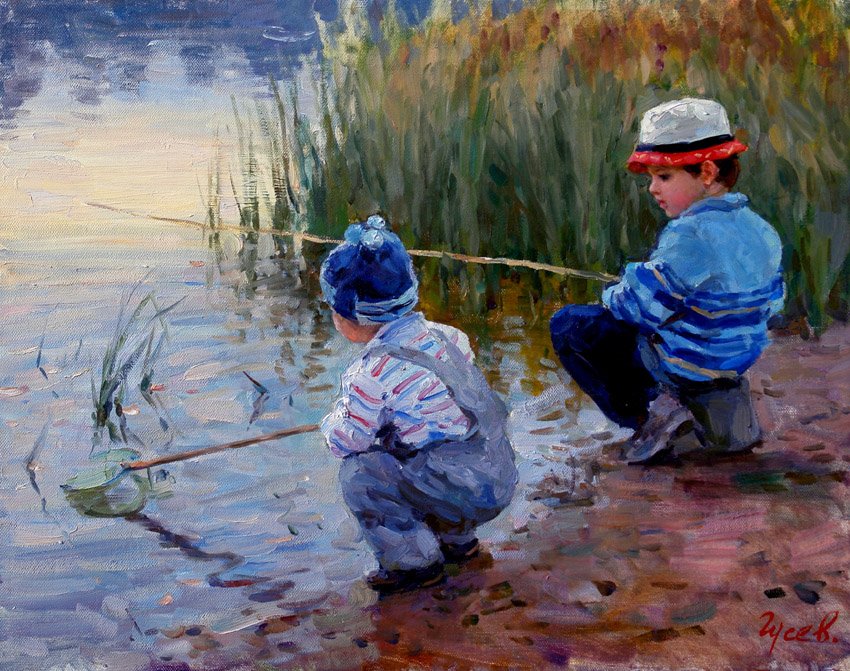 Картина "Дети на рыбалке" - это прекрасное произведение искусства, которое воплощает настроение и эмоции детей, окунувшихся в мир природы и увлеченных увлекательным занятием рыбалкой. На этой картине можно увидеть маленьких героев, сидящих на берегу реки, с удочками в руках и надеждой в глазах. Изображение передает атмосферу спокойствия и радости, погружая зрителя в мир игры и открытий. Каждая деталь картины, будь то яркие цвета природы, отражение лучей солнца на водной глади или выражения лиц детей, создают гармоничный образ и вызывают положительные эмоции. "Дети на рыбалке" - это настоящее произведение искусства, которое переносит нас в безмятежный и незабываемый мир детства и природы.