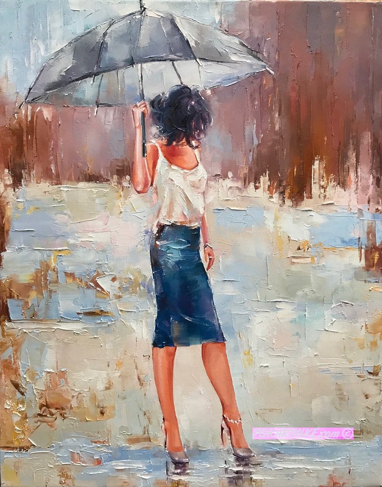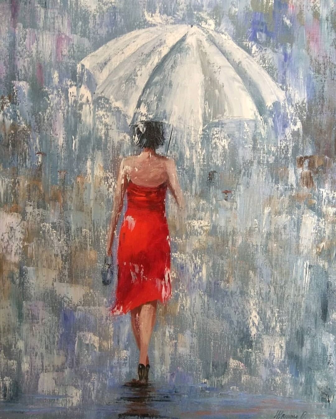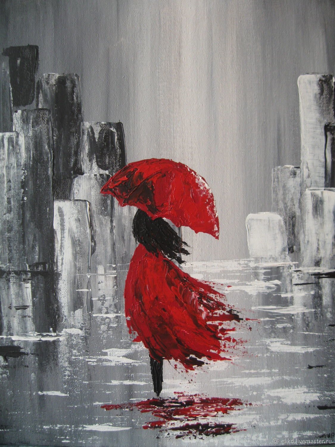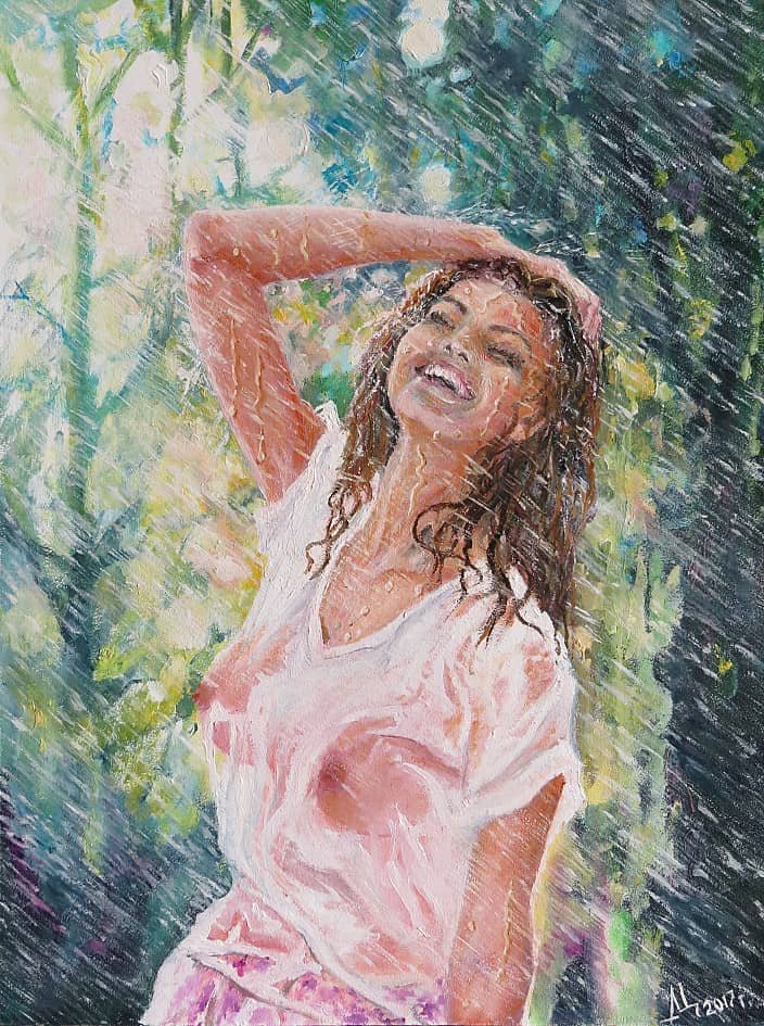 "Девушка дождя" - это картина, которая поражает своей глубиной и эмоциональной силой. На ней изображена одинокая девушка, стоящая под проливным дождем. Ее лицо отражает печаль и тоску, а мокрые волосы и промокшие одежда добавляют образу еще большей реалистичности. Картина передает неповторимую атмосферу осеннего дождя, в которой каждый может почувствовать настоящие чувства и эмоции. Она притягивает взгляды и заставляет задуматься о глубоких философских мыслях, вызывая у каждого зрителя собственные эмоции и впечатления. "Девушка дождя" - это произведение искусства, способное захватить сердца и души своих наблюдателей.