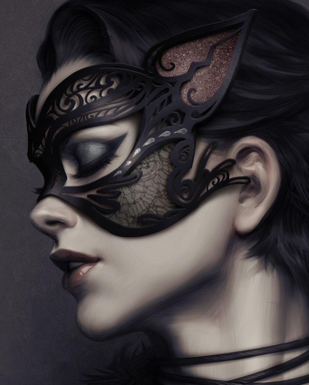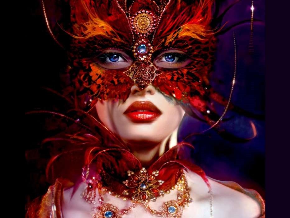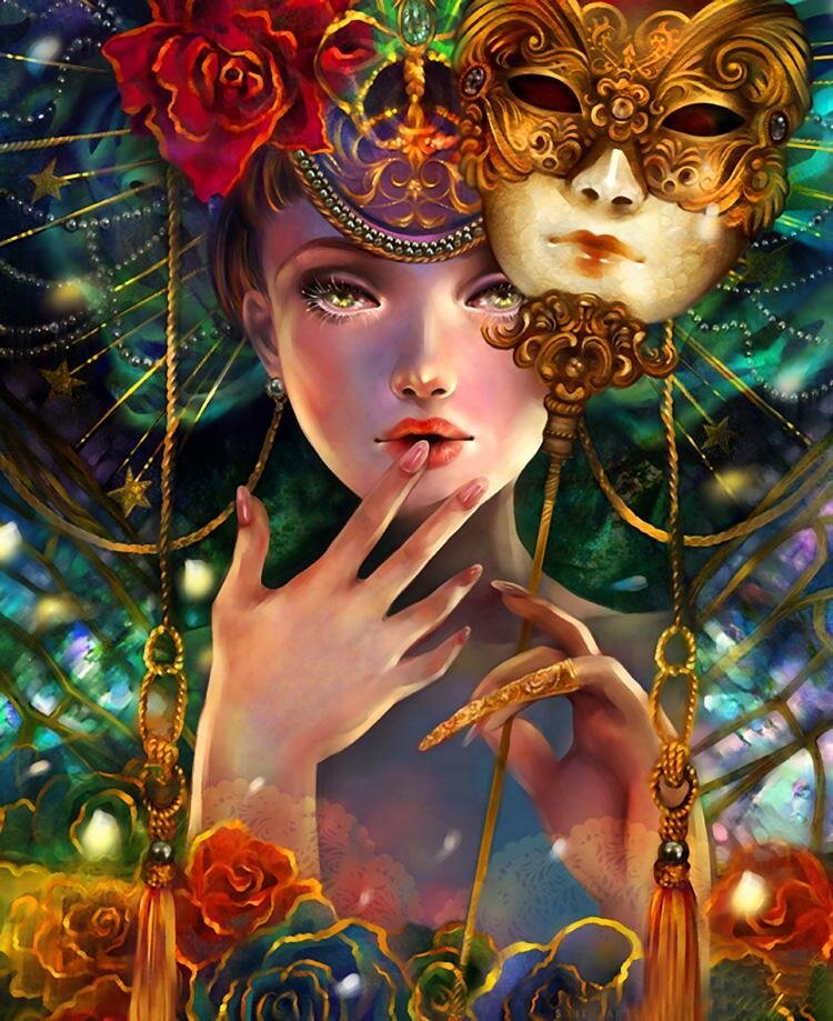 Женщина в маскарадной маске арт