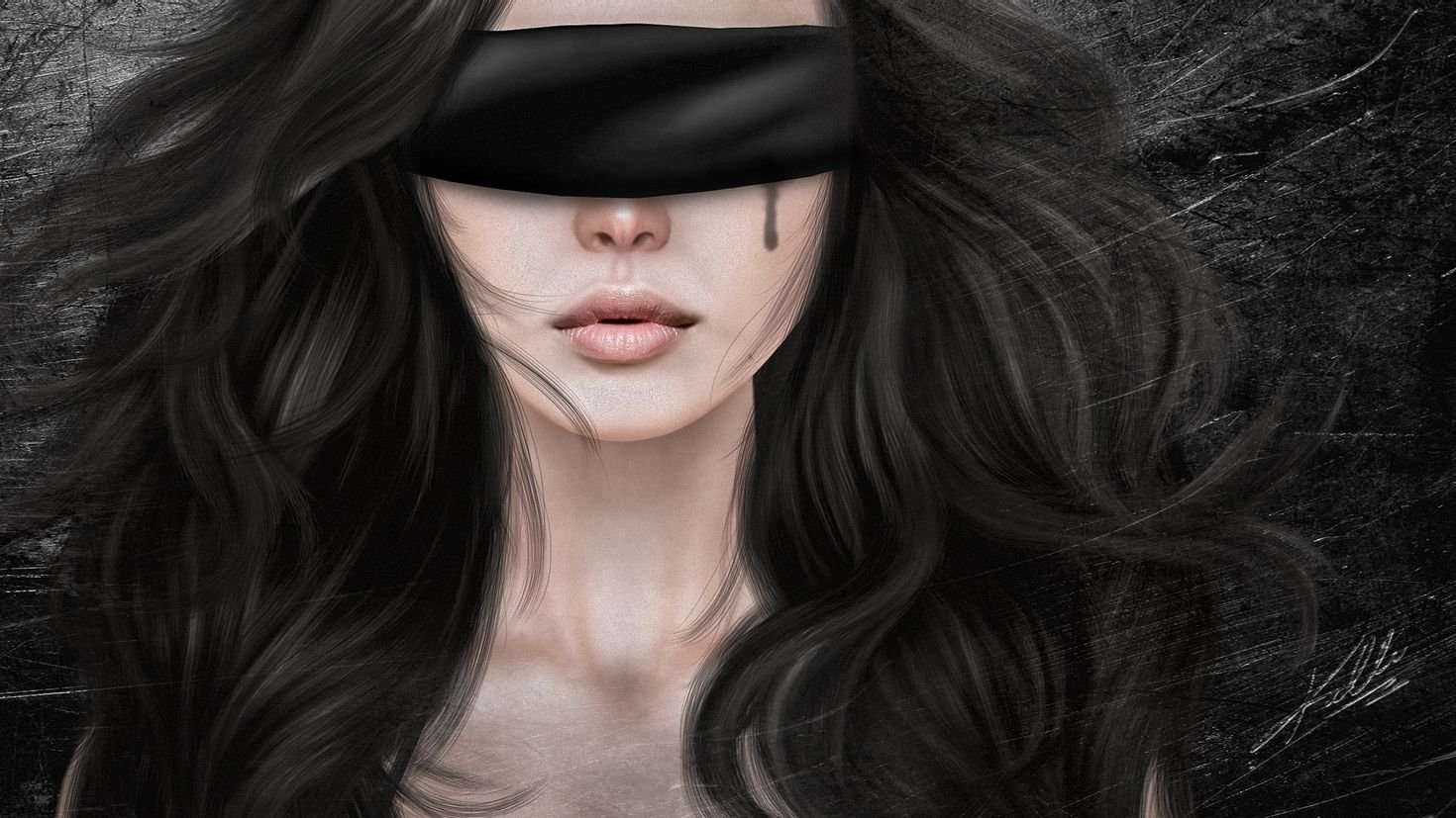 Девушка сповязко на глазах