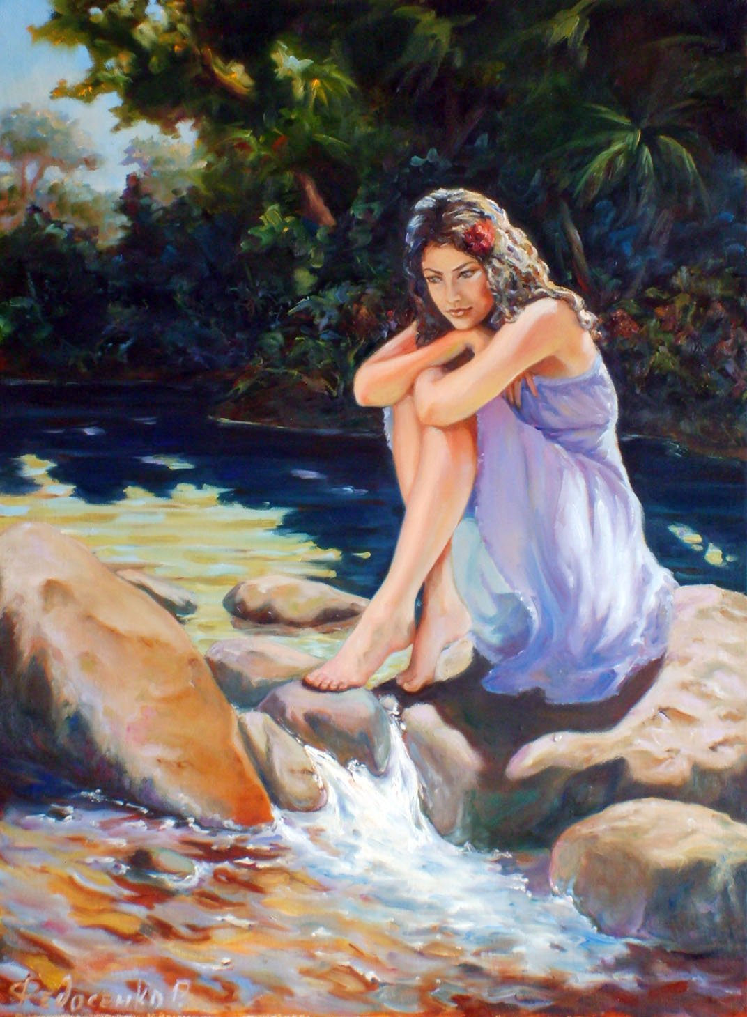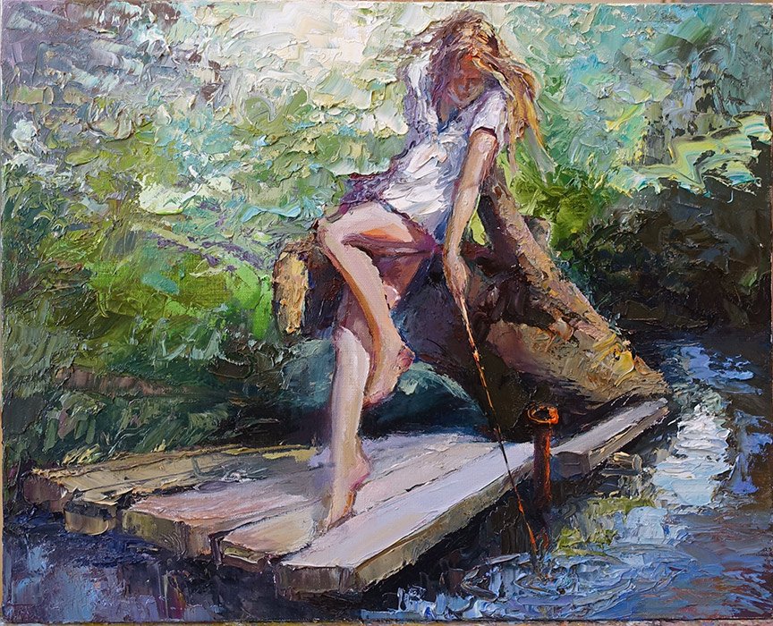Девушка у реки живопись