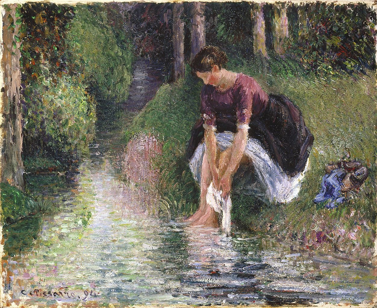 Женщина моет ноги в ручье 1894 Камиль Писсарро