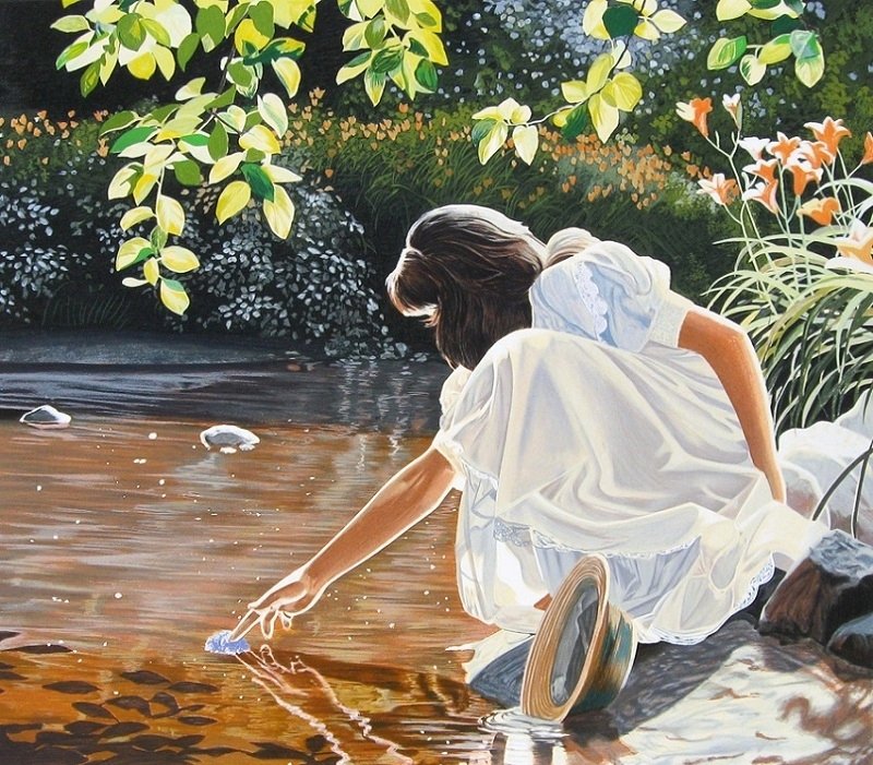 Девушка на берегу реки в живописи