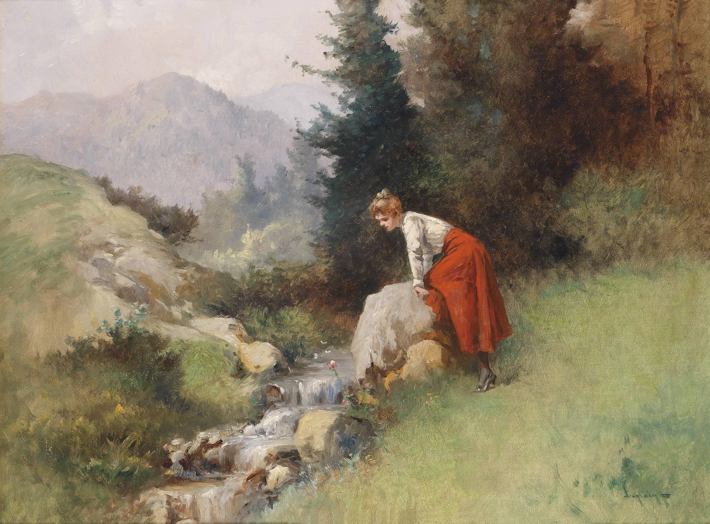 Девушка с кувшином у ручья