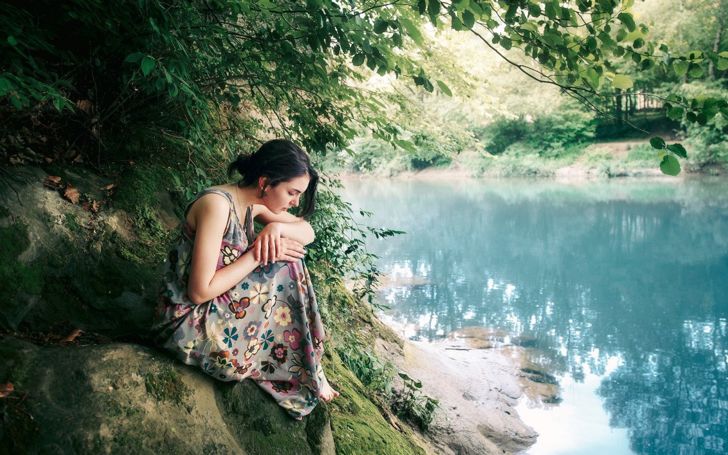 Девушка сидит у реки