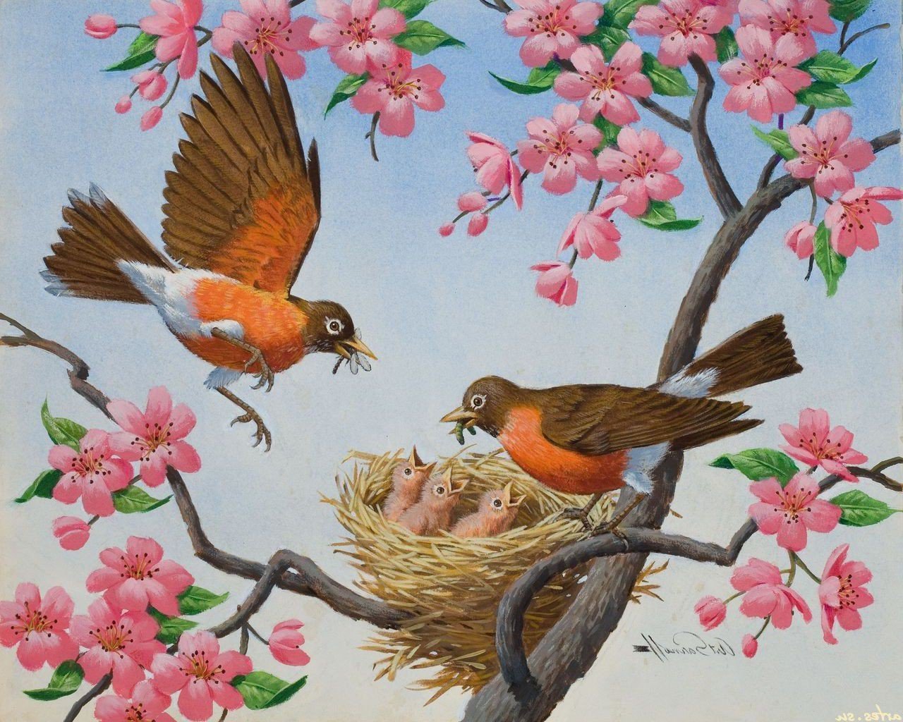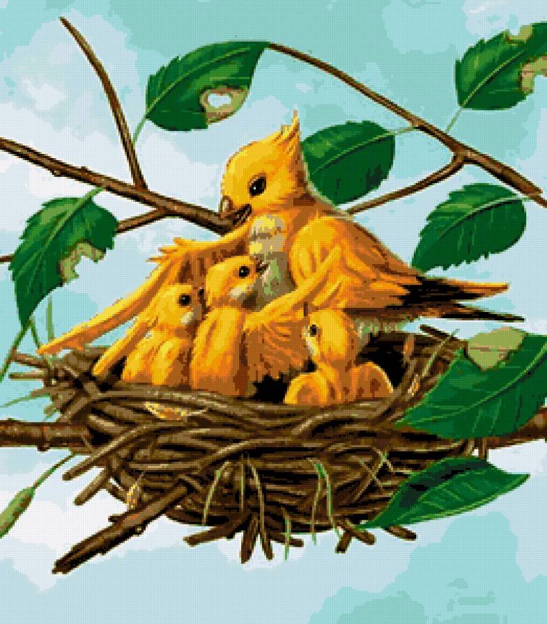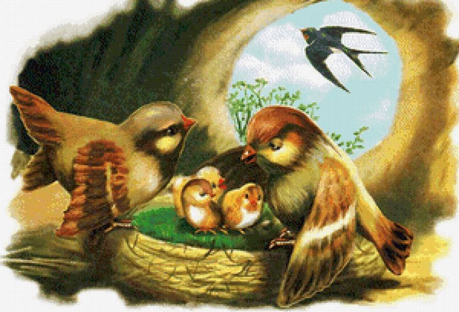Весенние птицы в гнезде
