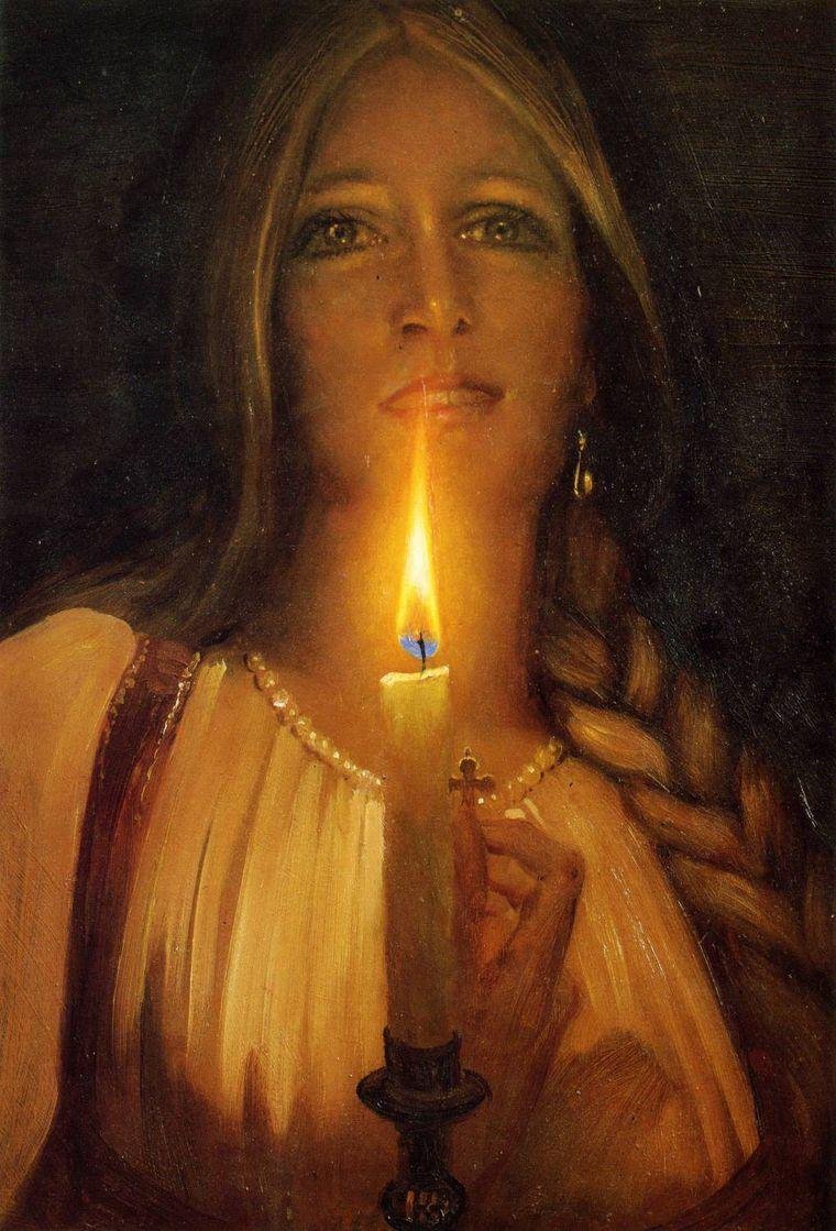 "Девушка со свечой" - одна из самых известных картин русского художника Василия Васильевича Верещагина. На этом полотне запечатлена молодая девушка, держащая в руках горящую свечу. Она выглядит загадочной и немного печальной, словно олицетворяющая собой символ утраченного времени, таинственности и одиночества. Мастерство Верещагина проявляется в точных деталях и реалистичности образа девушки, а также в игре света и тени, которая придает картине особый эффект глубины и настроения. "Девушка со свечой" - это произведение искусства, способное заинтересовать и тронуть сердца зрителей своей загадочностью и красотой."