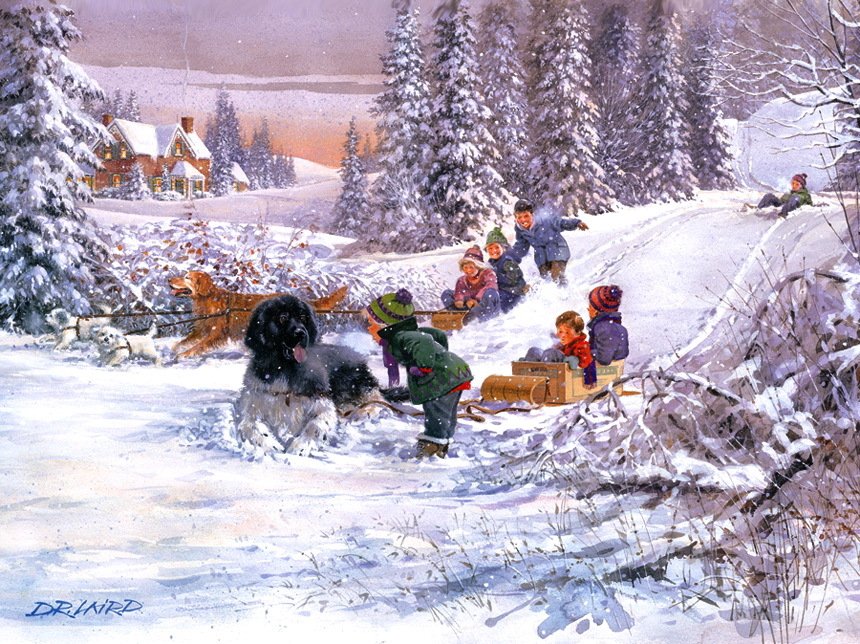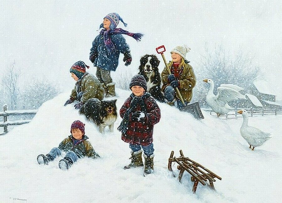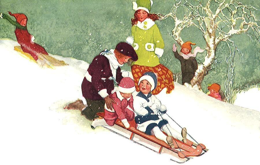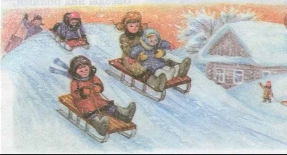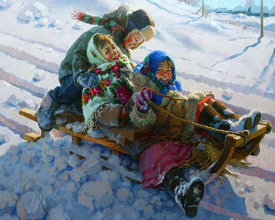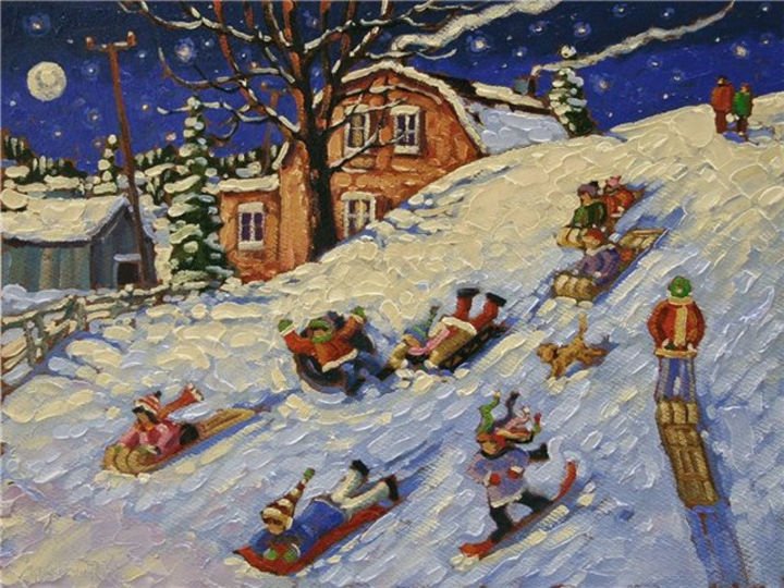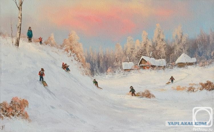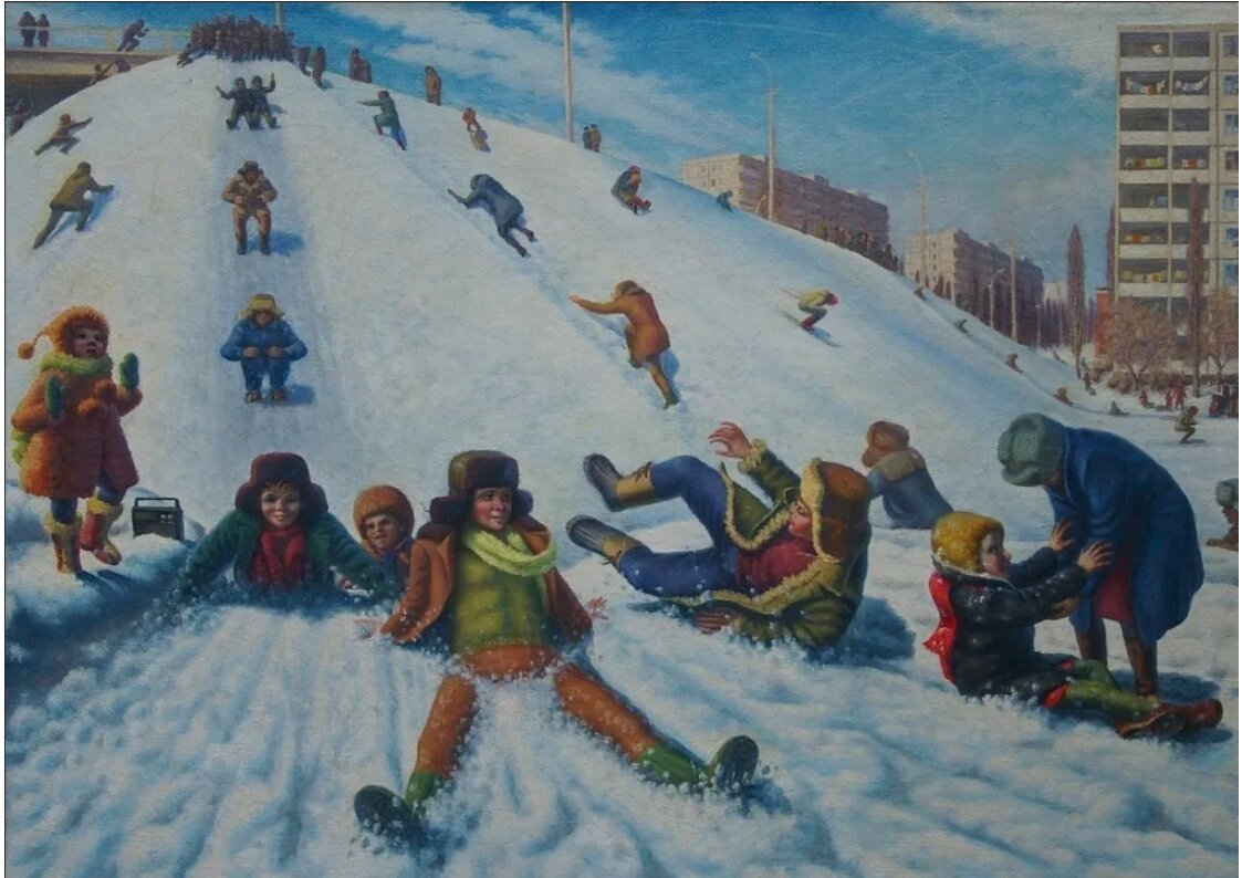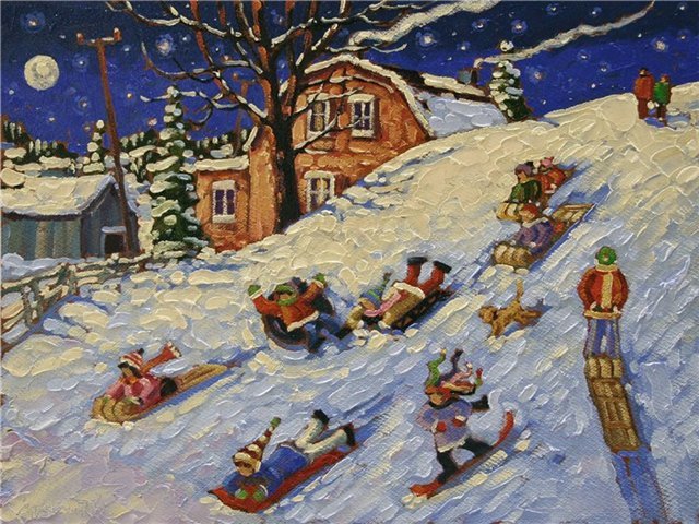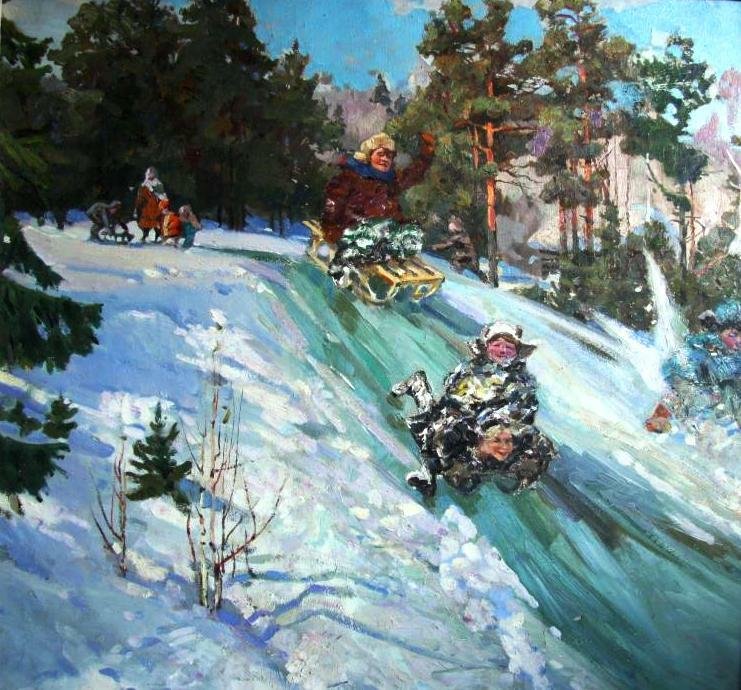 Катание с горок живопись