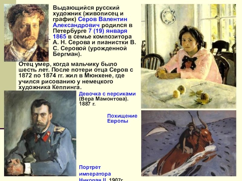 Картина "Дети" Валентина Александровича Серова – это произведение искусства, которое захватывает взгляд и оставляет незабываемые впечатления. Художник, известный своей тонкой мастерством и умением передать эмоции на холсте, воссоздал на этой работе портрет двух детей. Они предстают перед нами в полной невинности и естественности, их глаза наполнены радостью и игривостью, а лица выражают непосредственность и чистоту детского мира. Картина "Дети" отличается прекрасным сочетанием цветовой гаммы и смягченными контурами, что создает особую атмосферу нежности и непринужденности. Это произведение искусства является не только великолепным образцом живописи, но и позволяет зрителю заглянуть в детство и пережить его радость и беззаботность.