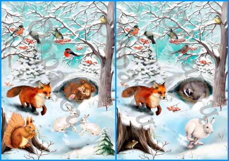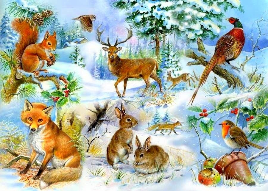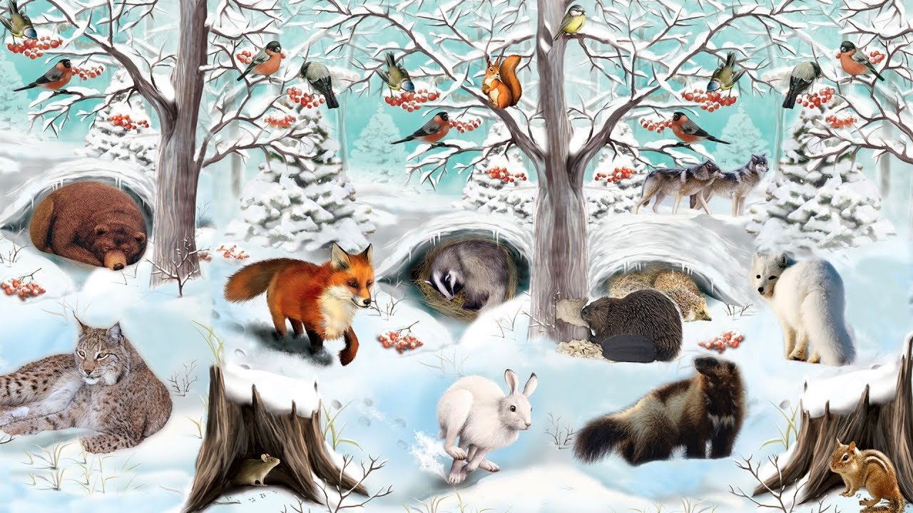 Животные в зимнем лесу для детей