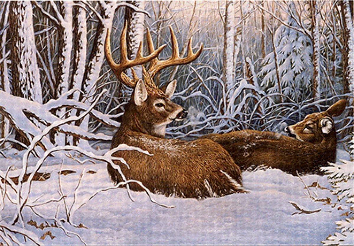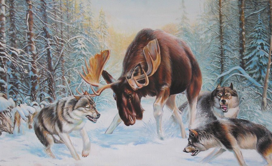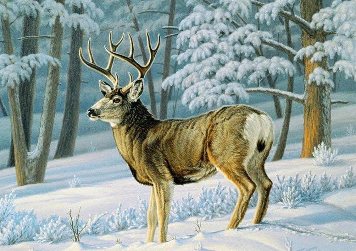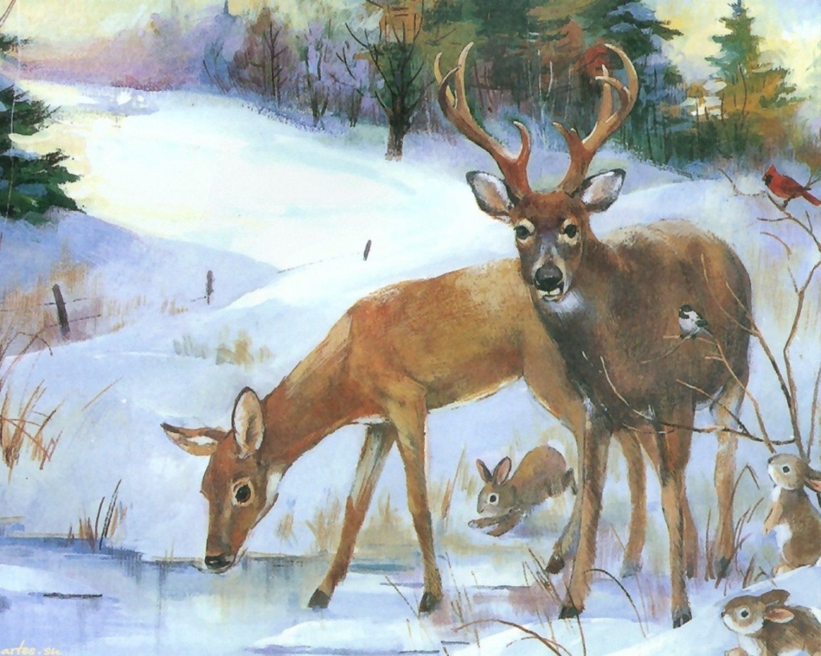 Животные зимой живопись