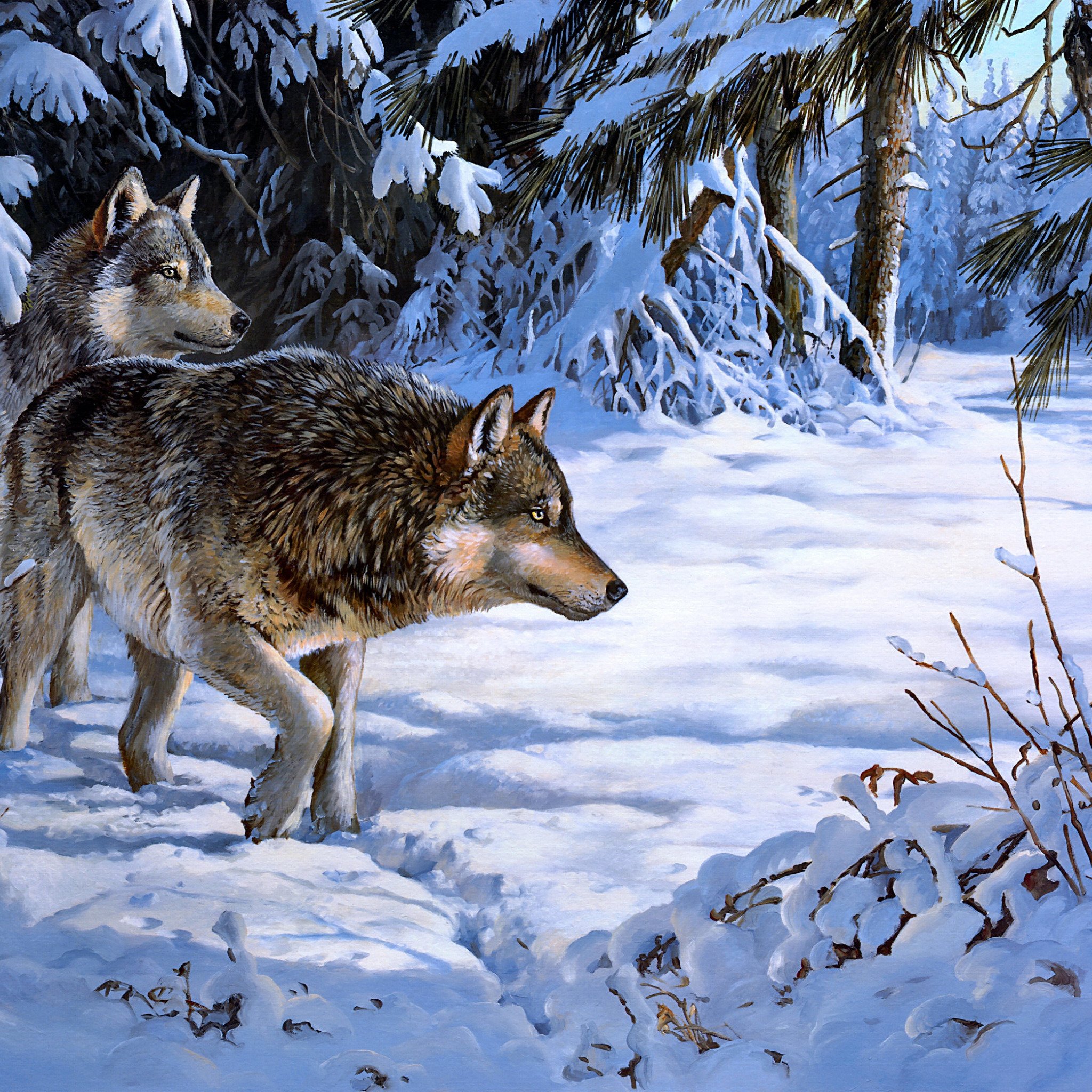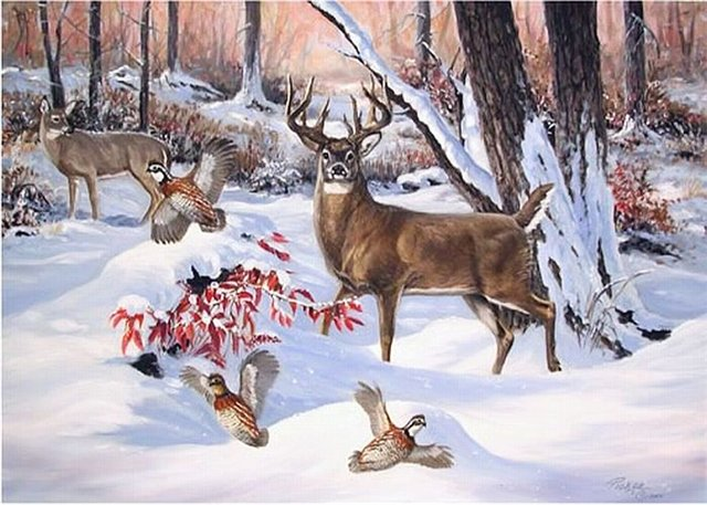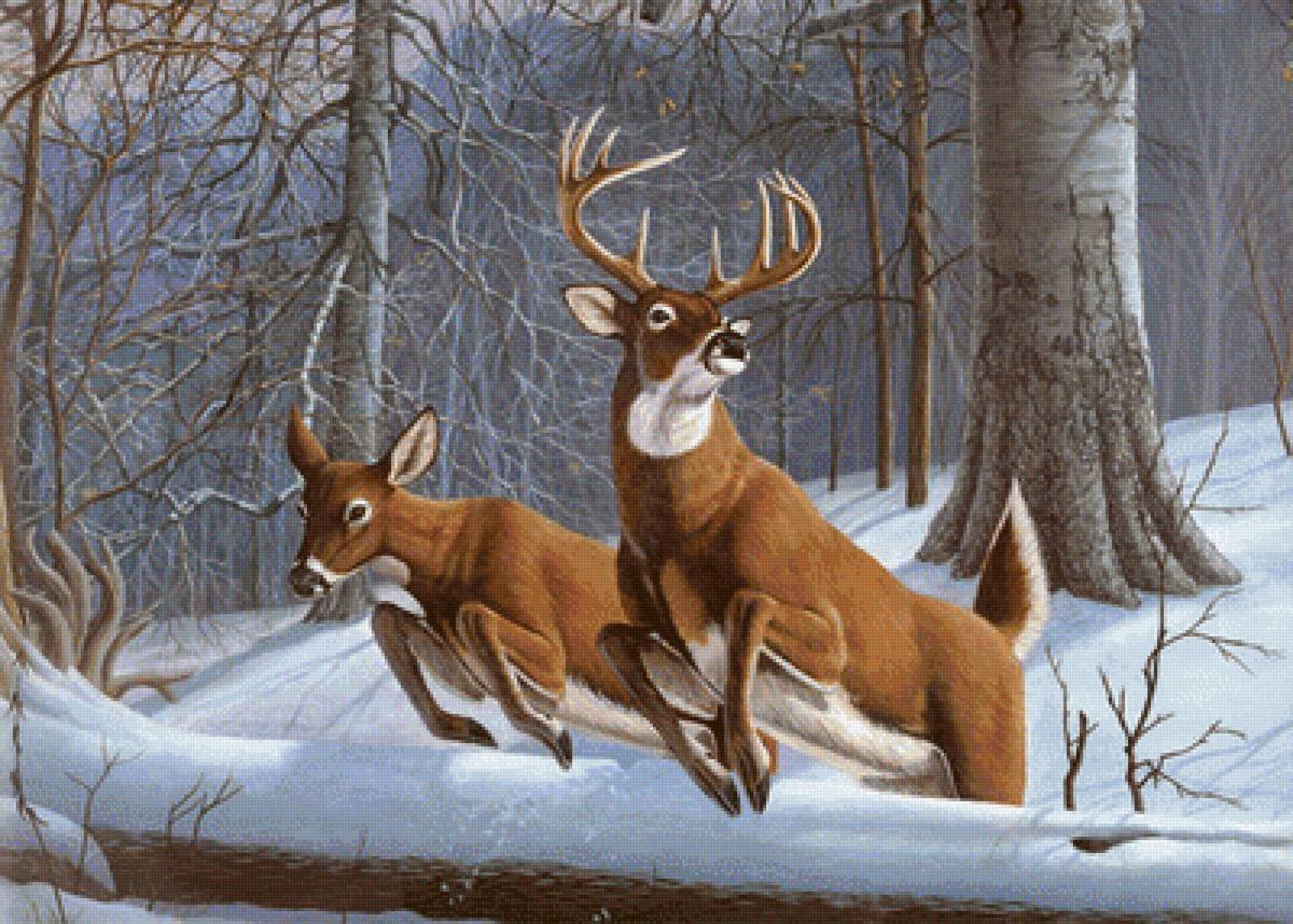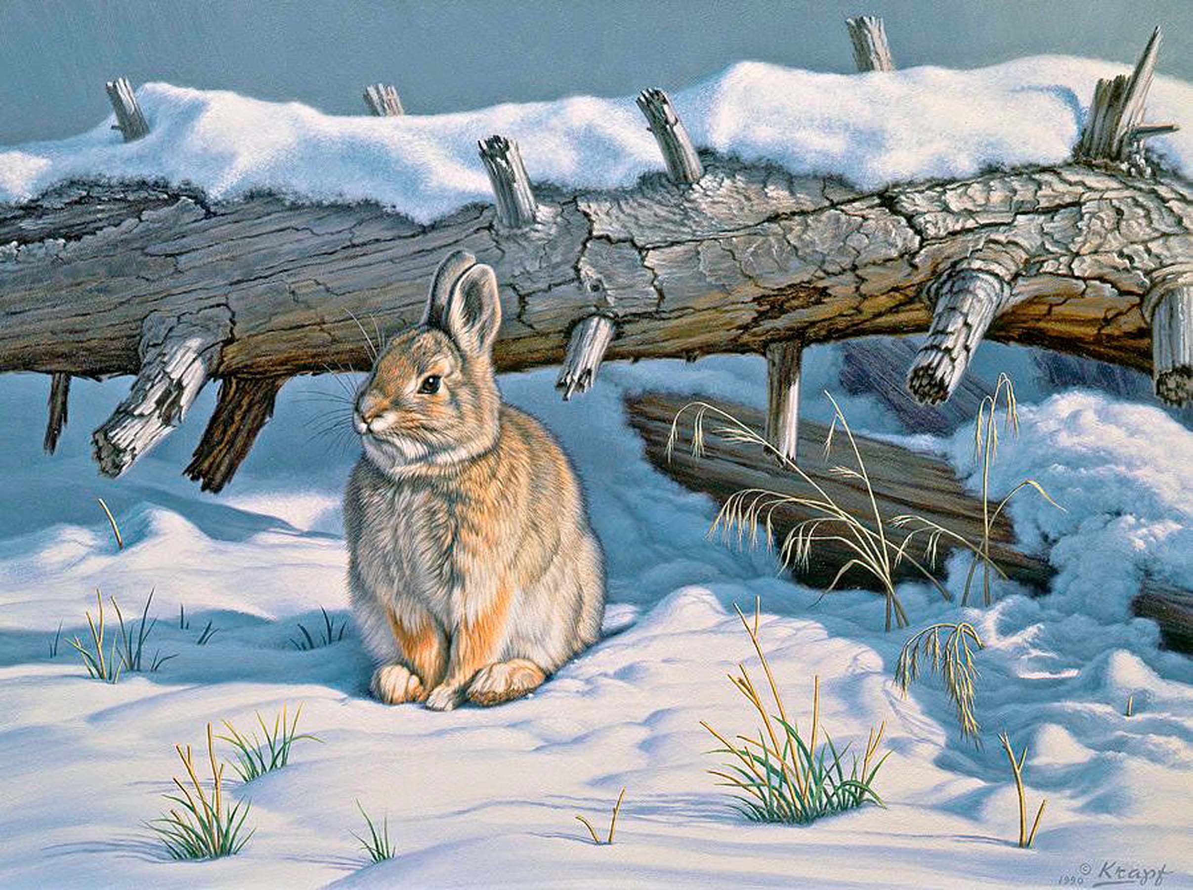 Животные зимой живопись