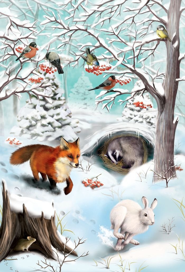 Иллюстрации животные зимой