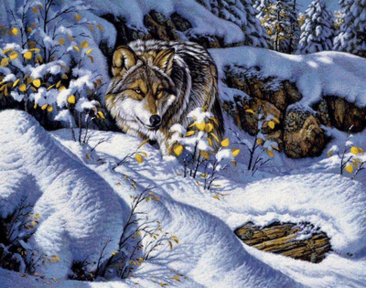 Волк в зимнем лесу