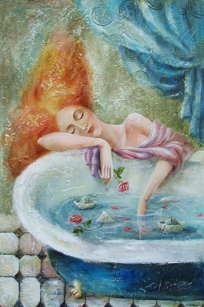"Девушка в ванной" - это картина, которая захватывает зрителя своей изящностью и нежностью. На этом произведении искусства изображена молодая женщина, окруженная пеной и благоухающими цветами. Ее тело, прекрасно подсвеченное отражением в воде, выглядит неподвижным и спокойным. Яркие и насыщенные цвета придают картине живость и энергию, создавая атмосферу умиротворения и расслабления. Это произведение искусства открывает перед зрителем мир интимности и красоты, принося радость и вдохновение."