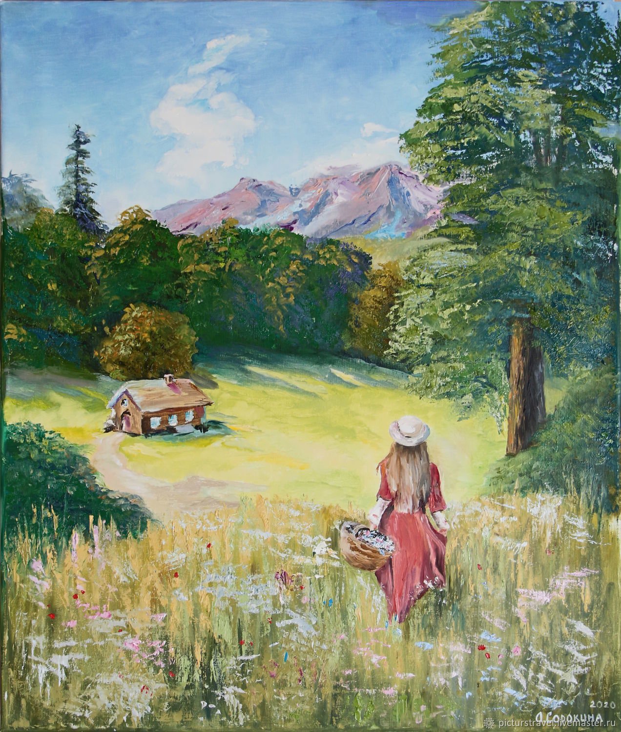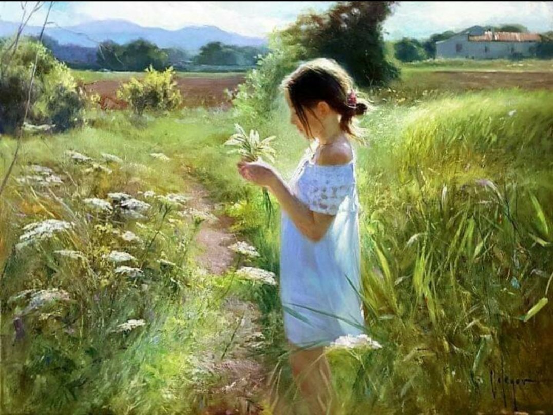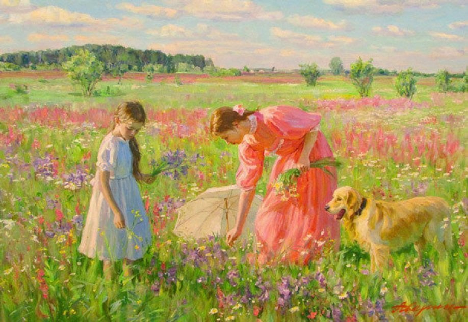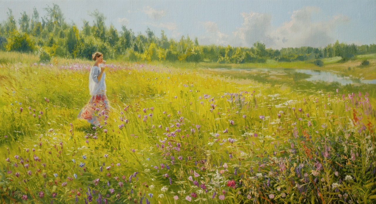 Живопись девушка в поле