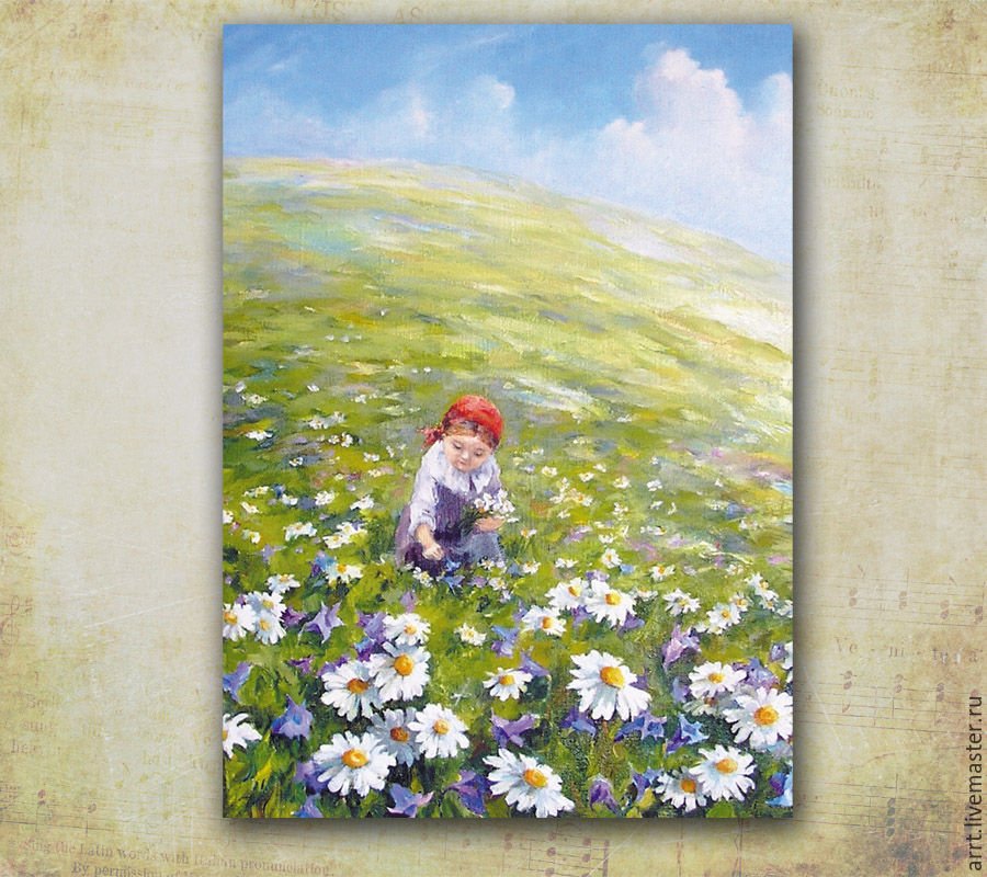 Ромашки на лугу живопись