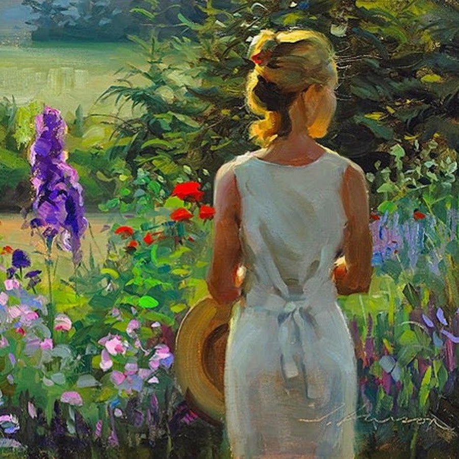 Девушка в цветах живопись