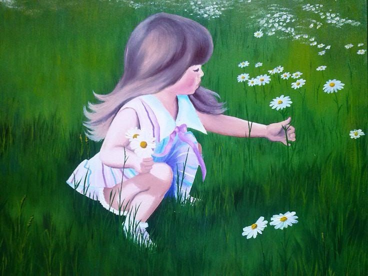 Девушка в поле цветов живопись