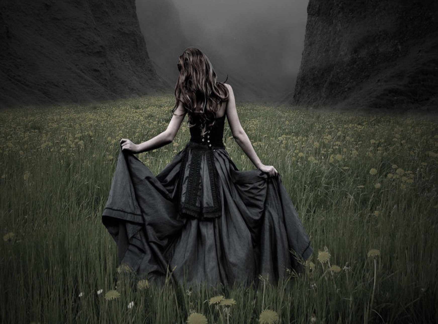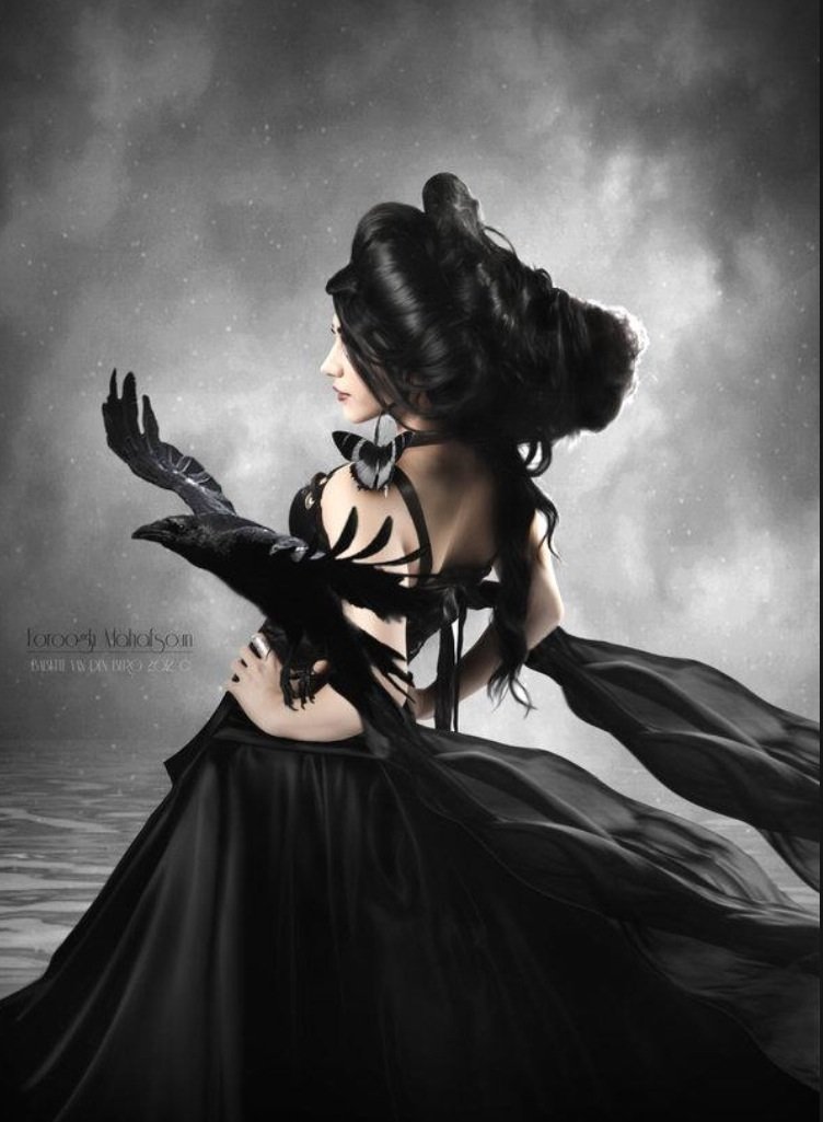 Девушка в черном платье фэнтези