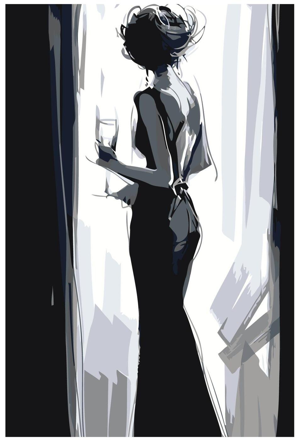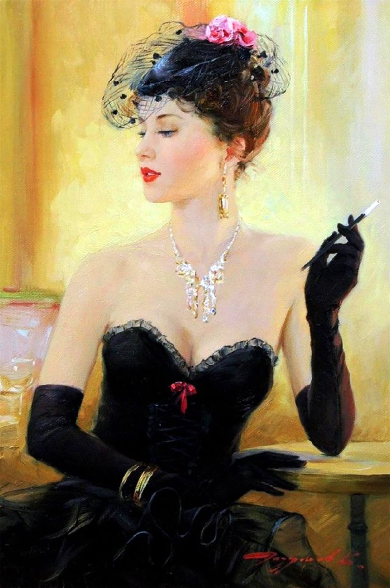 Девушка в черном платье картина