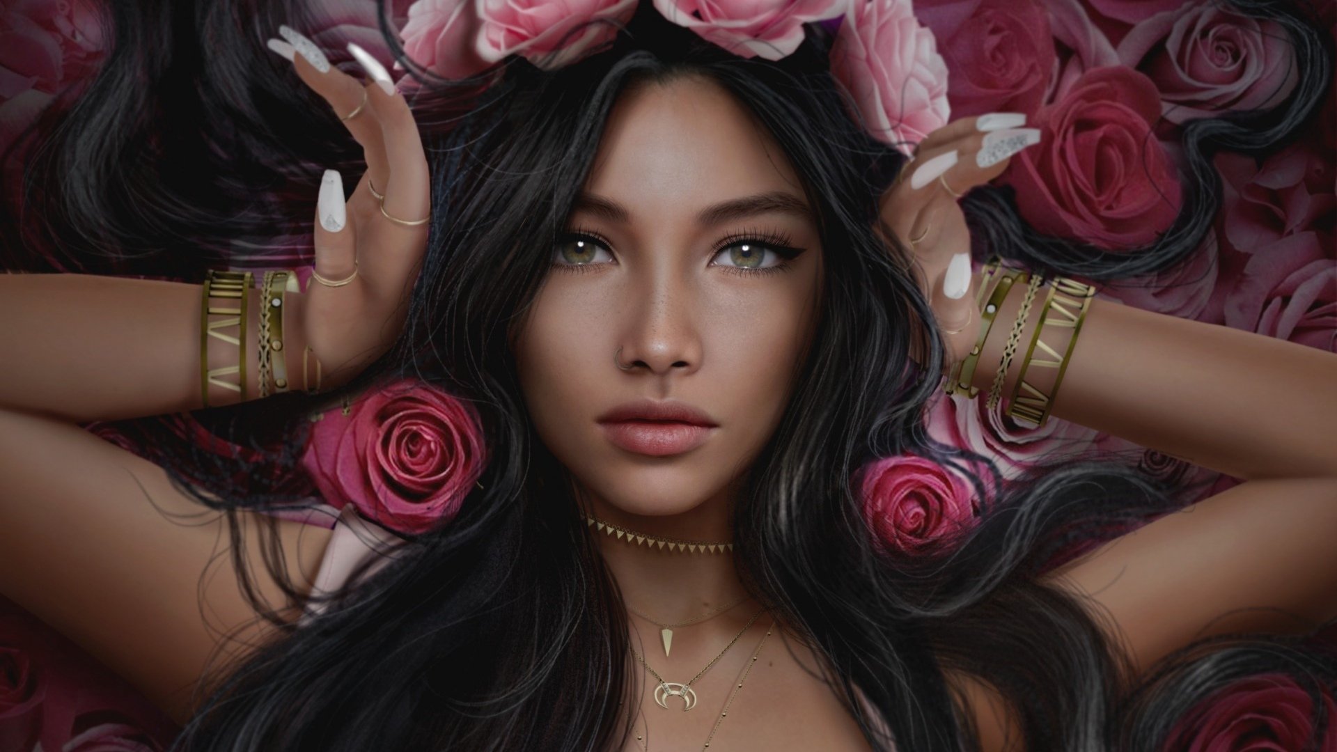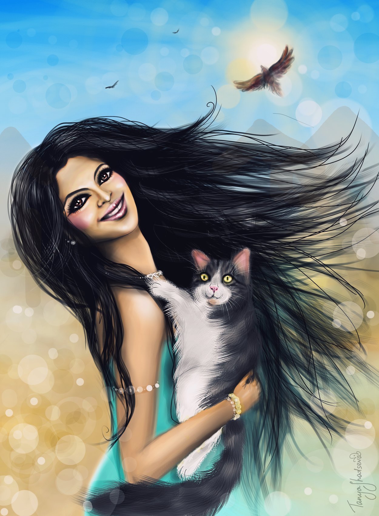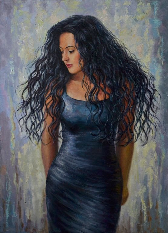 Девушка с длинными черными волосами арт