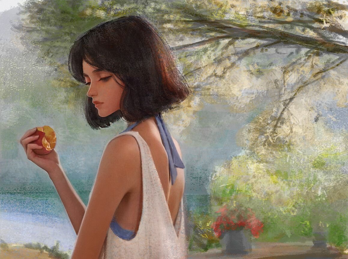 Девушка с каре живопись