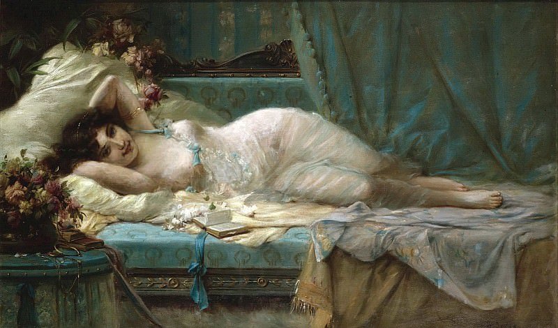 Картина девушка на кровати