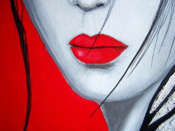 Картина женщина с красными губами