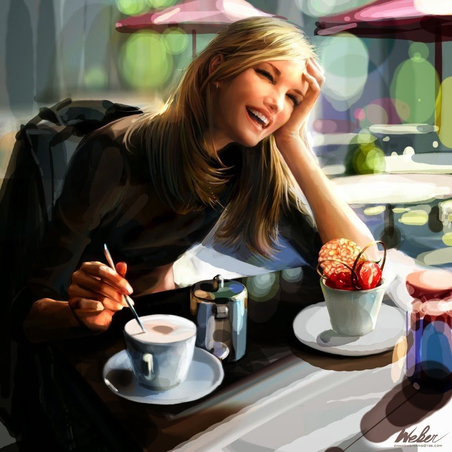 Франсин Ван Хоув женщина кофе живопись