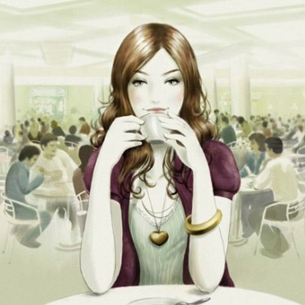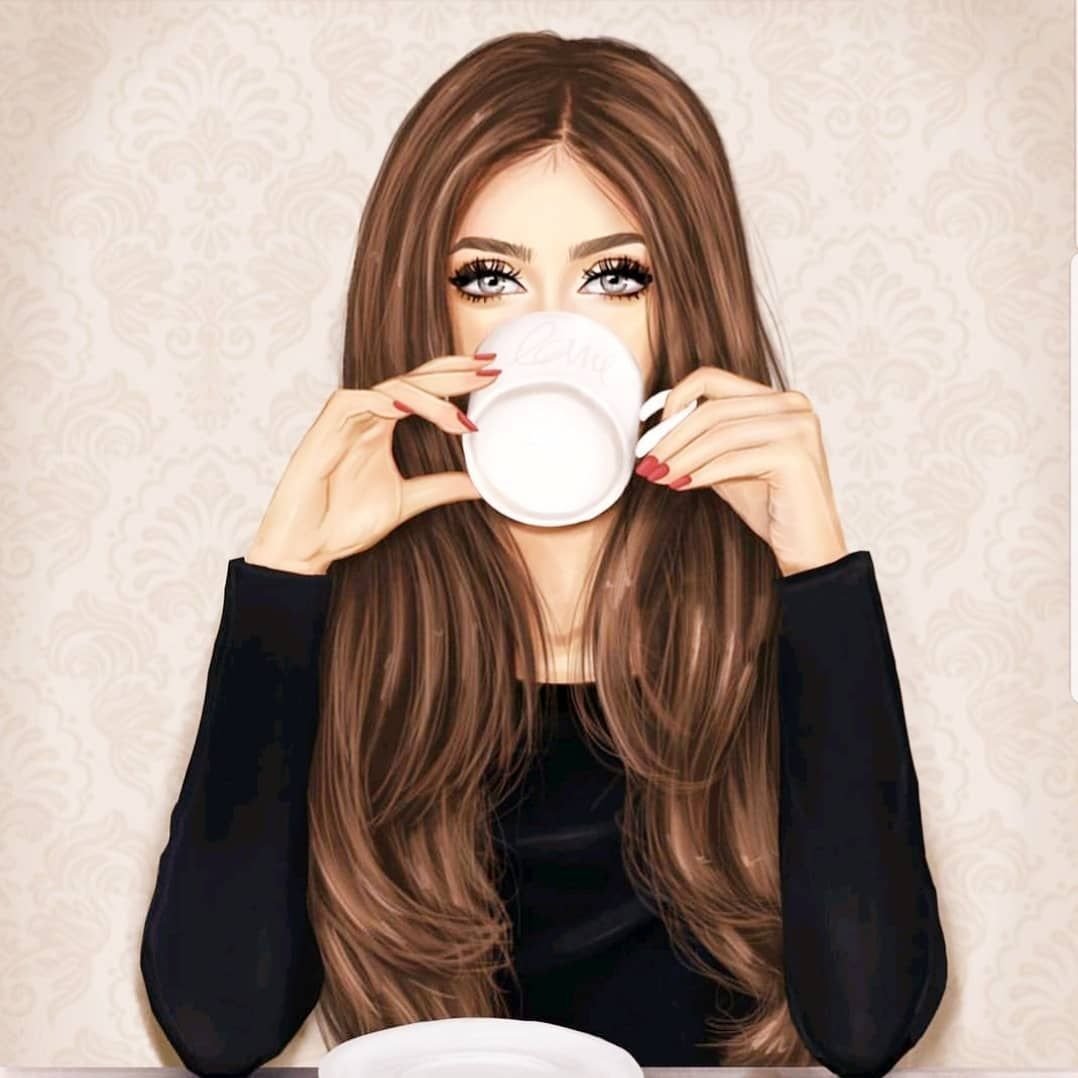 Нарисованная девушка с кофе