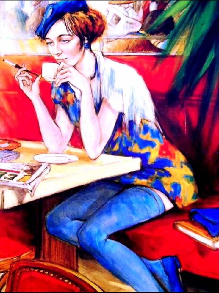 Дама с чашкой кофе в живописи