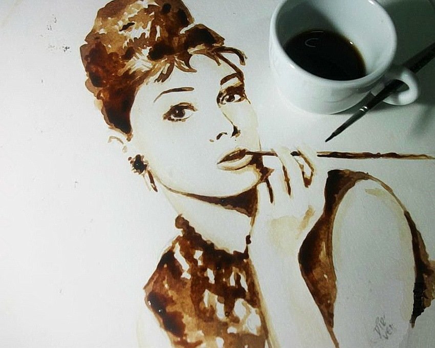 Одри Хепберн с кофе,рисунок
