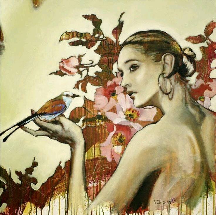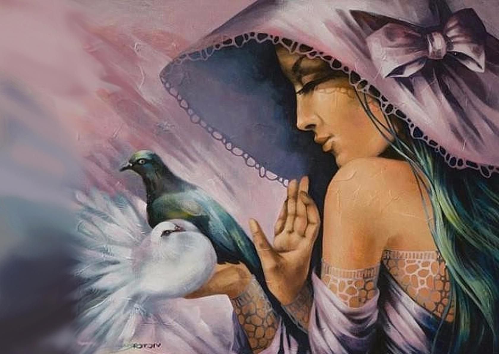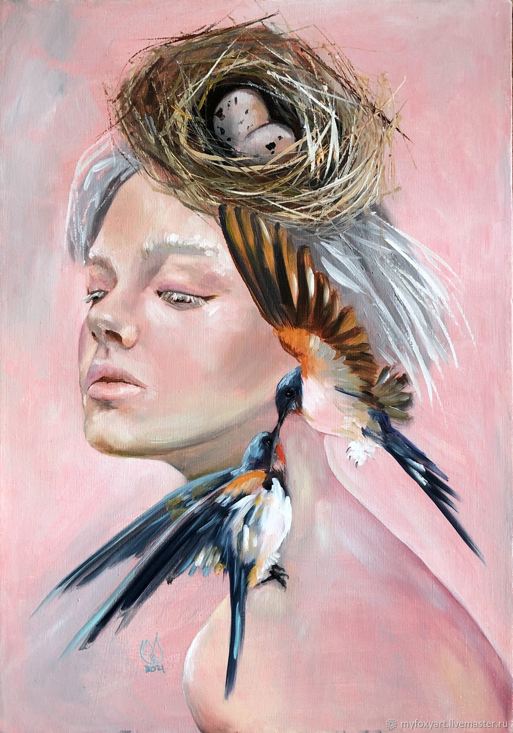 Женщина птица живопись