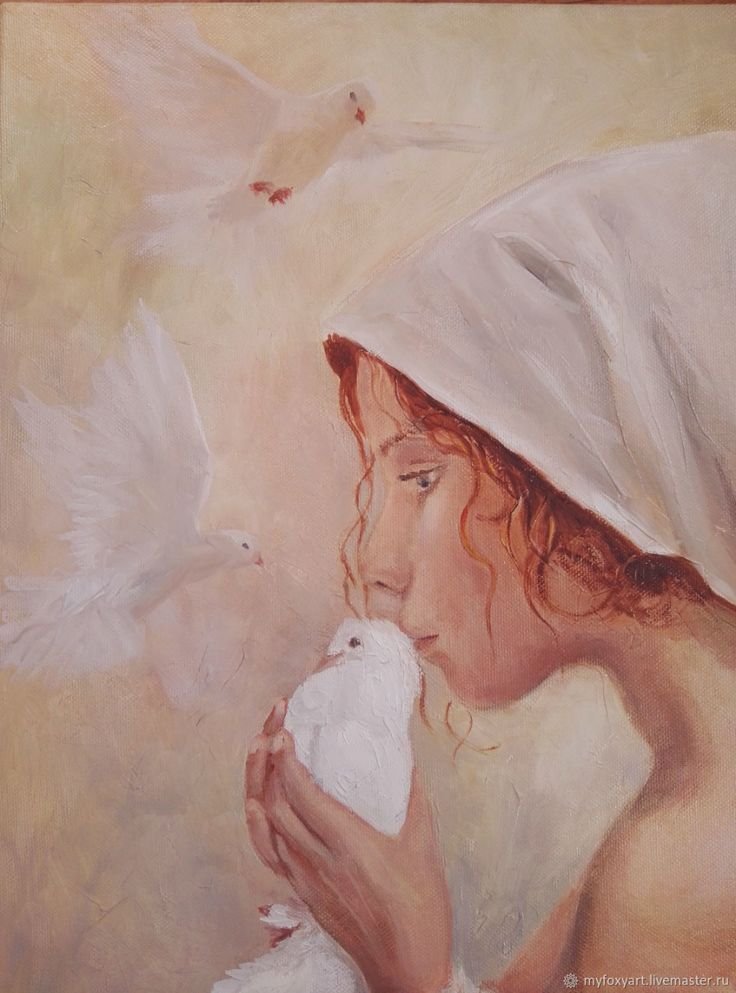 Девушка и голуби живопись