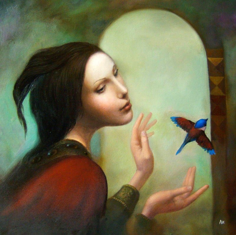Девушка с птицей живопись