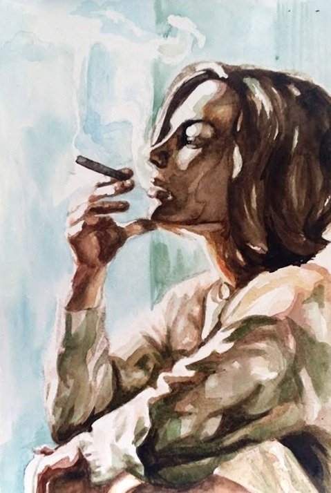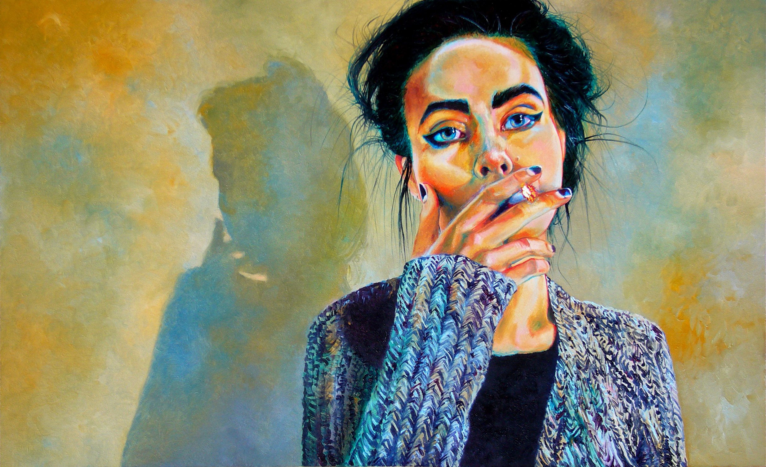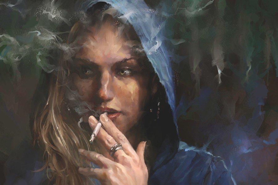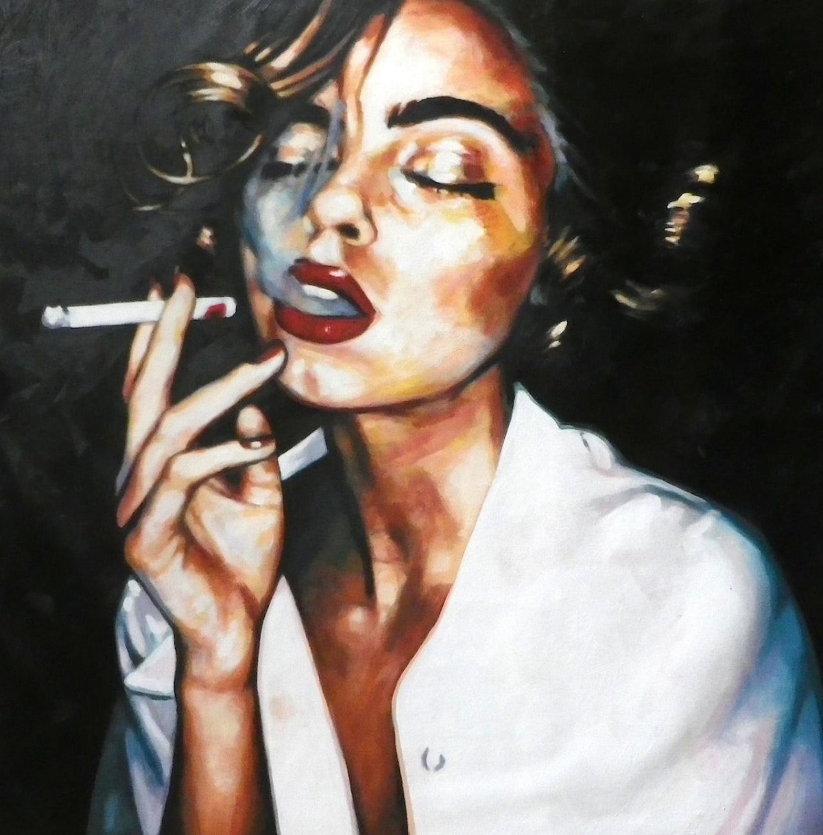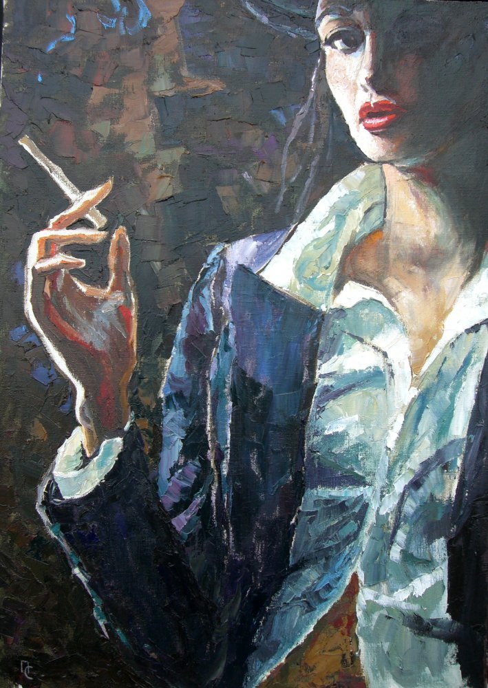 Женщина с сигаретой живопись