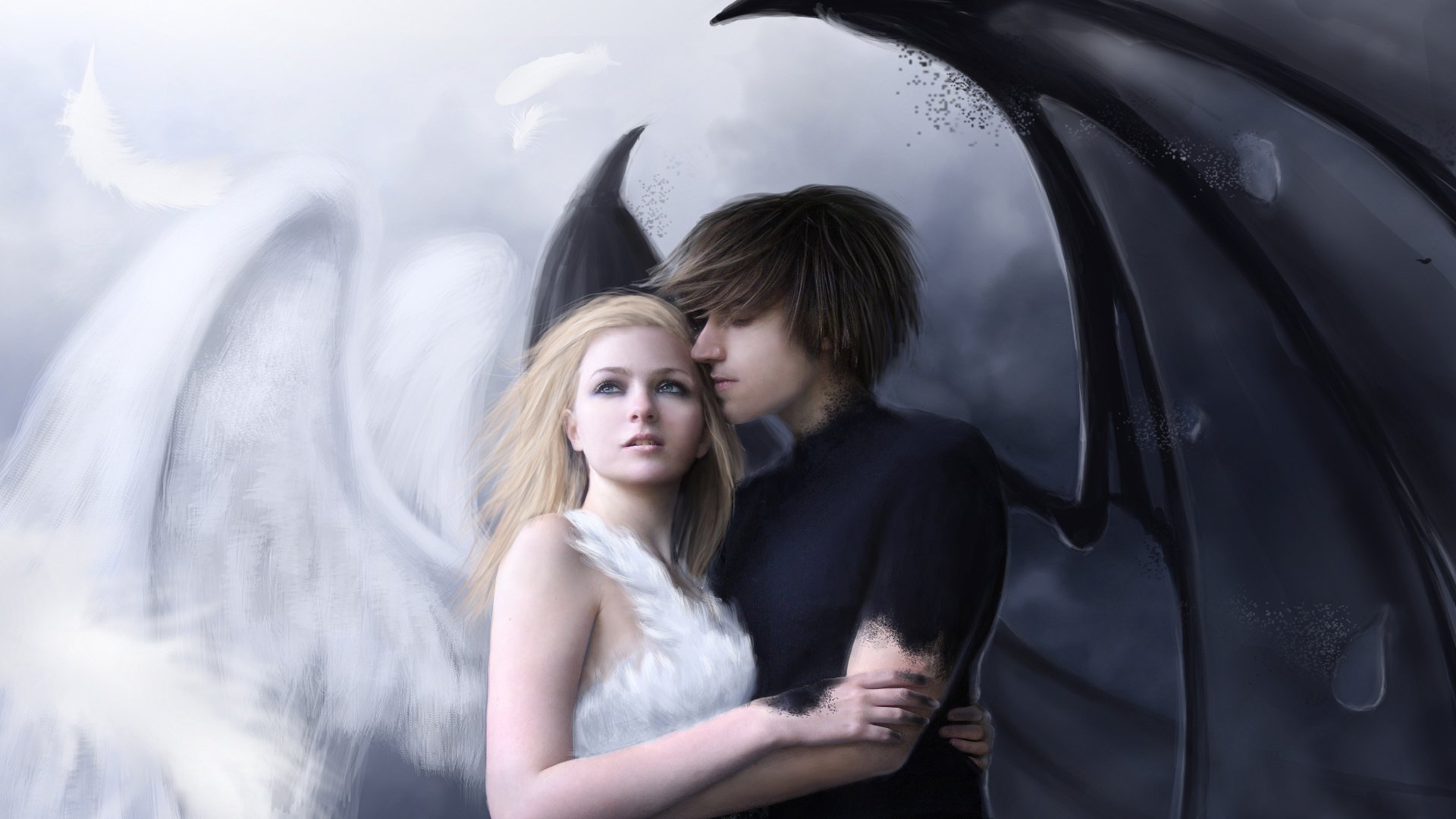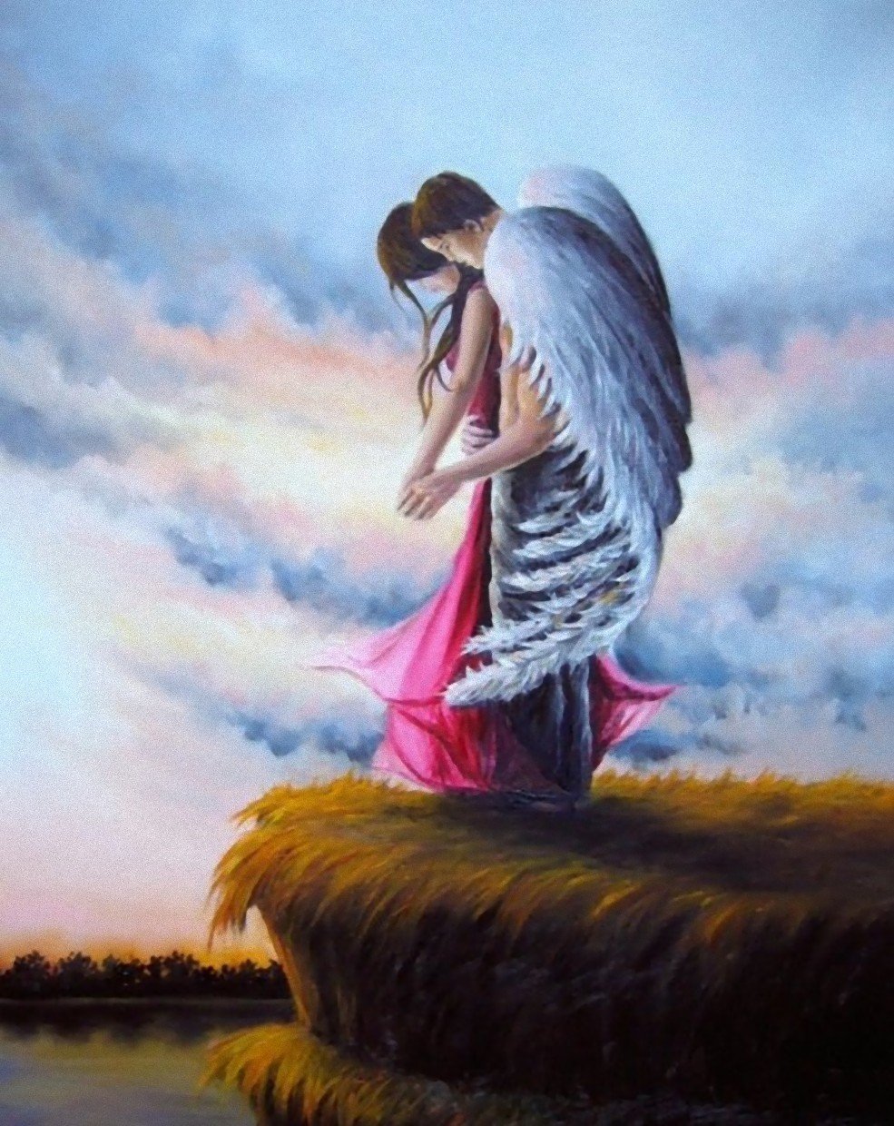 Ангел обнимает девушку