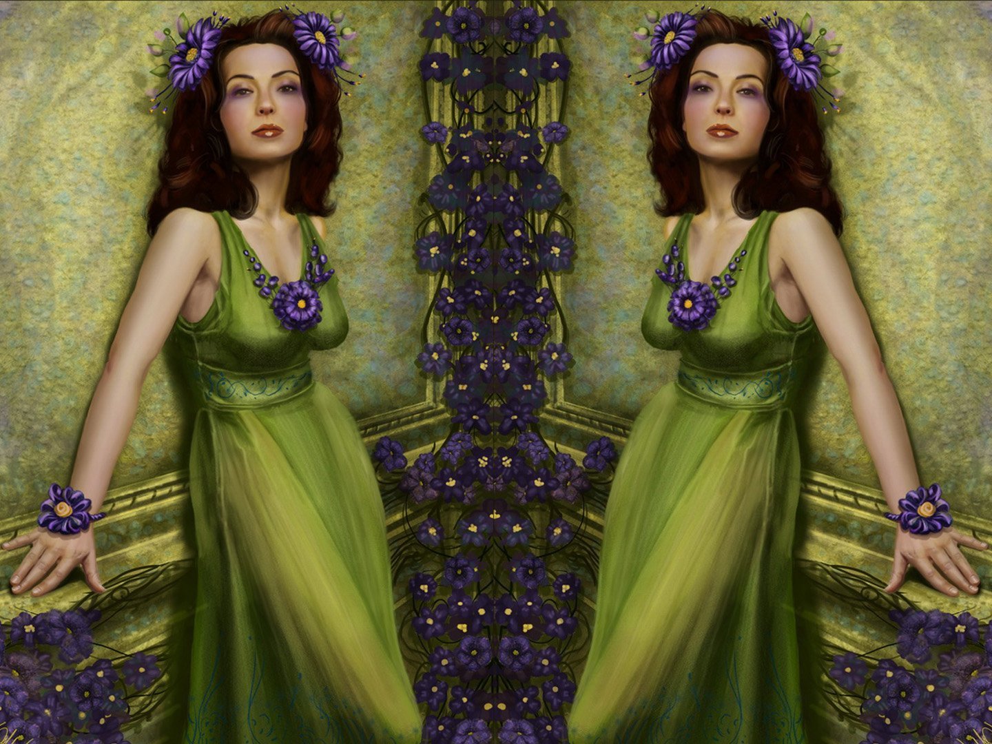 Рыжие девушки спиной в зеленом платье