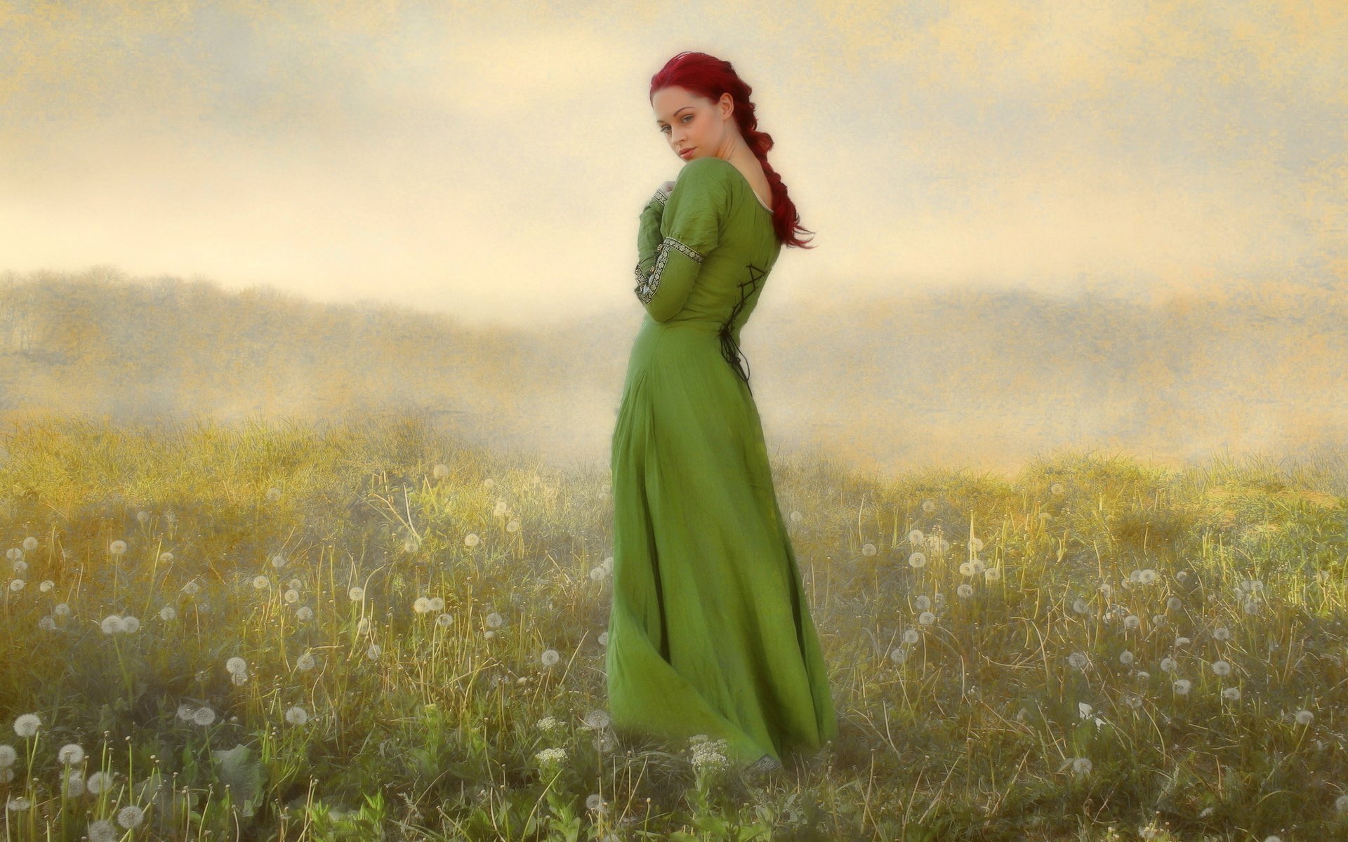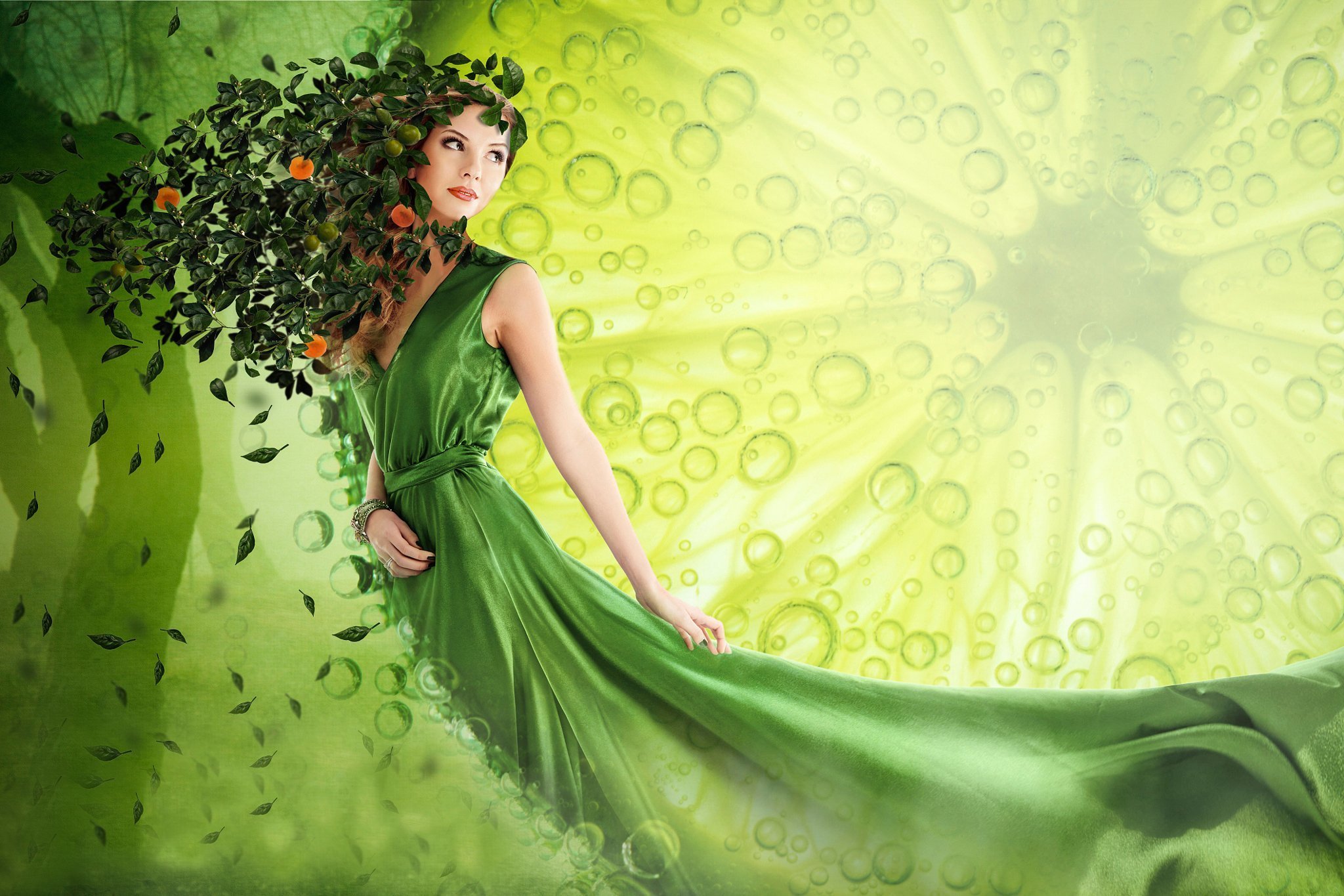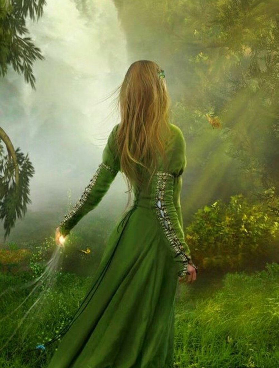 Девушка в зеленом платье фэнтези