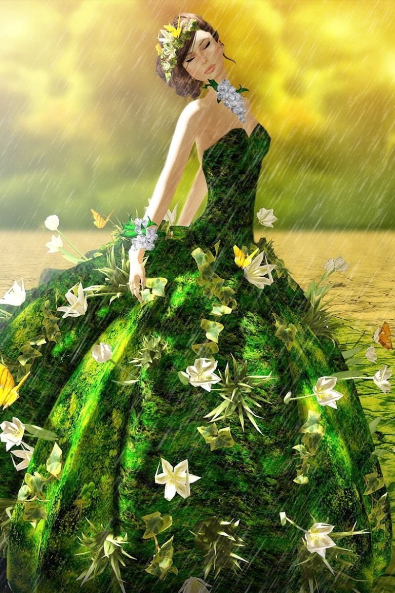 Зелёное платье фэнтези