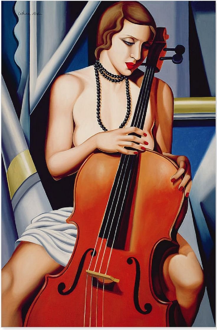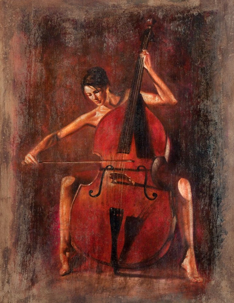 Картина "Девушка с контрабасом" - это произведение искусства, которое великолепно сочетает в себе живопись и музыку. На этой картина изображена прекрасная девушка, держащая в руках контрабас. Ее особенная грация и уверенность придают картине атмосферу элегантности и изящества. Можно почувствовать ее страсть к музыке, которая отразилась на ее лице и позе. Художник сумел передать каждую ноту, каждую эмоцию музыки через кисть и цвета, создавая образ, который захватывает внимание зрителя. Эта картина является идеальным дополнением для любого интерьера, добавляя в него нотку классики и прекрасной музыки.