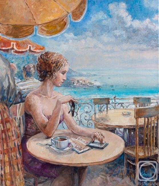 "Девушка в кафе" - это удивительная картина, которая притягивает взгляды своей таинственной и загадочной атмосферой. На ней изображена молодая женщина, окруженная атмосферой уюта и расслабленности, наслаждающаяся чашкой ароматного кофе. Ее глаза полны тонких эмоций и мыслей, она задумчиво смотрит в никуда, словно уносится в свои собственные размышления. Цветовая гамма картины основана на спокойных и приятных оттенках, что подчеркивает атмосферу покоя и умиротворения. Картина "Девушка в кафе" является истинным произведением искусства, передающим состояние души и эмоций главной героини, заставляющий зрителя задуматься о тайнах, которые скрываются за ее взглядом.