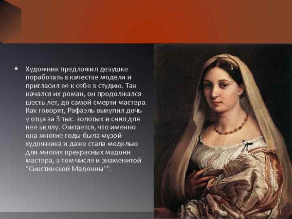 Девушка с картины Рафаэля - непревзойденное произведение искусства, которое олицетворяет красоту и элегантность. На этой картине Рафаэль изображает молодую женщину с идеальными пропорциями тела и утонченной фигурой. Ее взгляд полон нежности и загадочности, а лицо выражает спокойствие и грацию. Каждая линия и каждая деталь на этой картины продуманы до мельчайших деталей, что делает ее одним из самых узнаваемых и любимых произведений искусства. Эта девушка с картины Рафаэля привлекает внимание своей изящностью и очарованием, и оставляет незабываемое впечатление на всех, кто видит это произведение.
