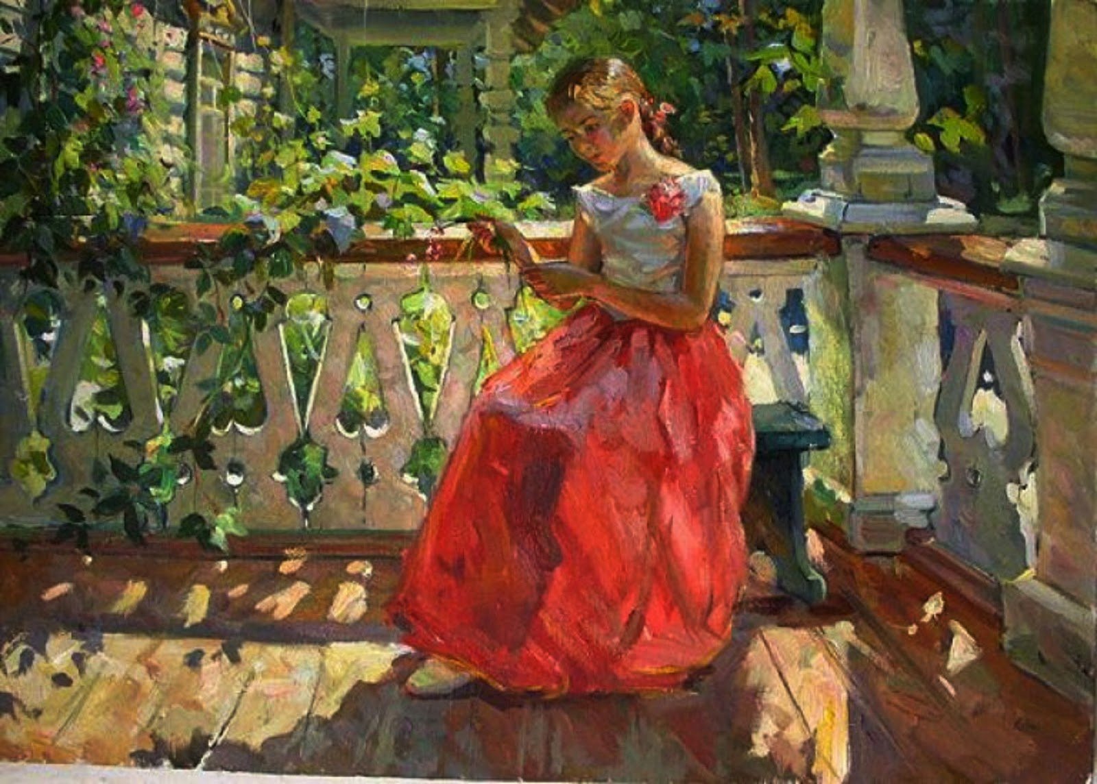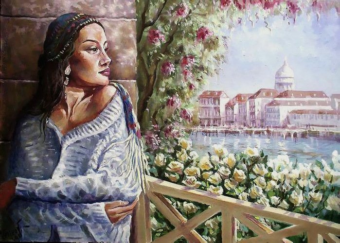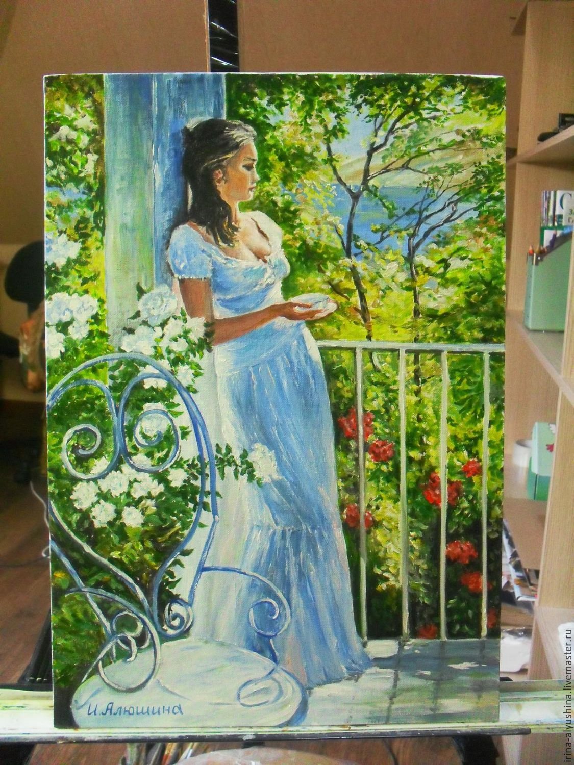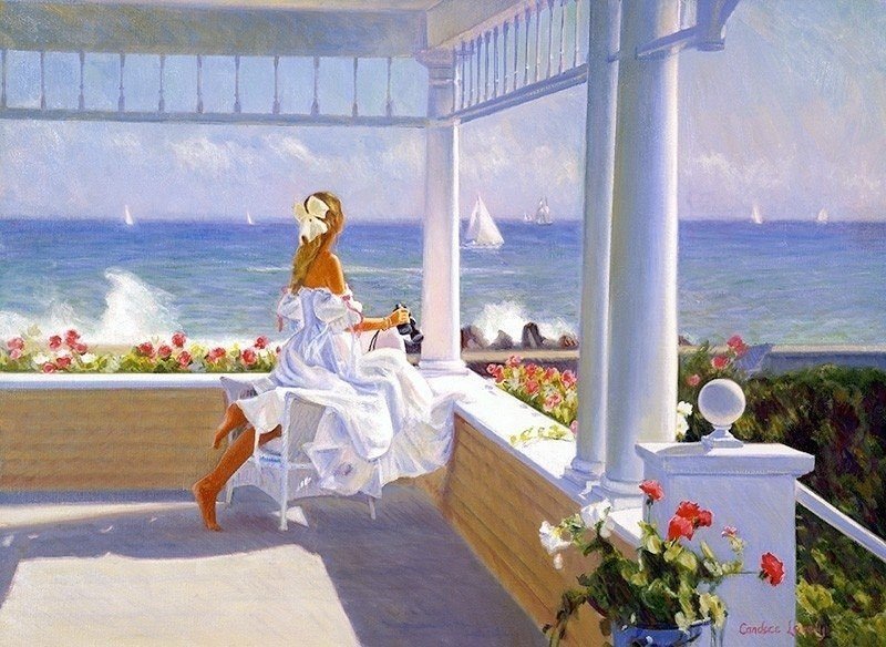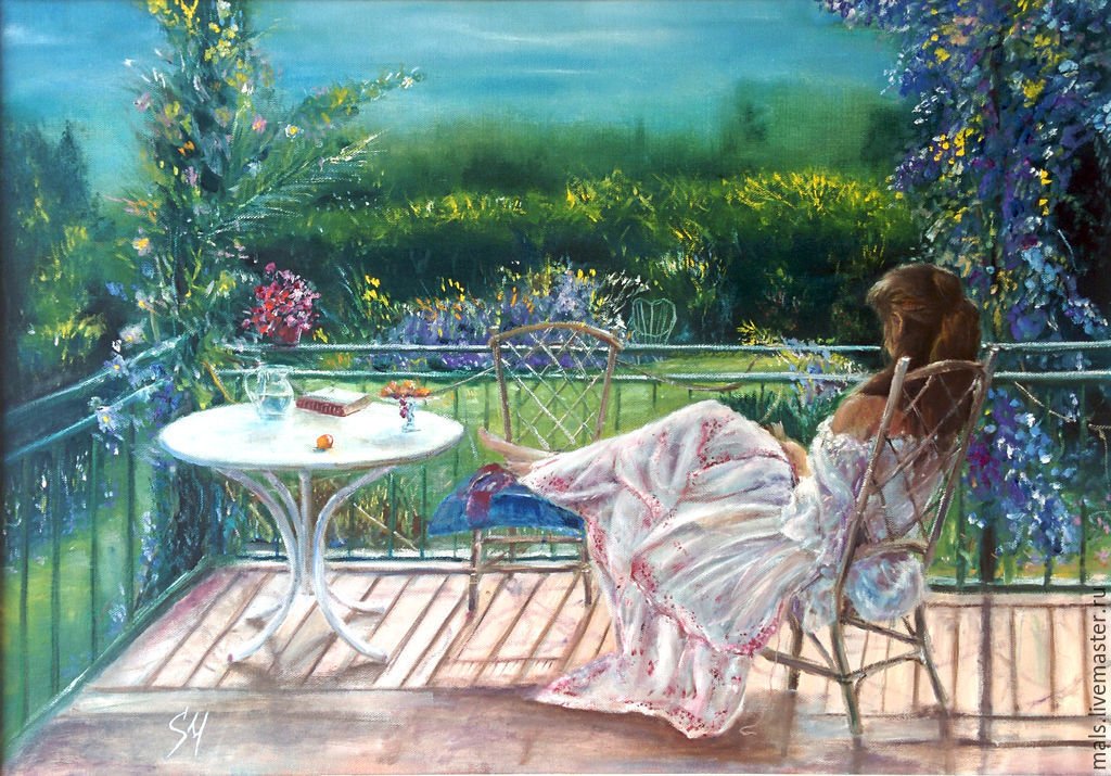 Девушка на террасе картина