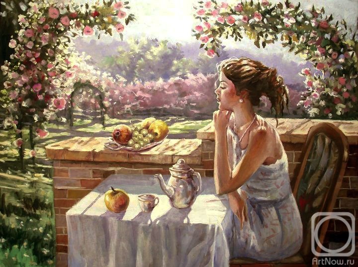 Утренний чай в саду живопись
