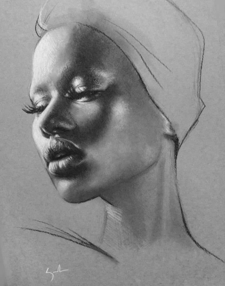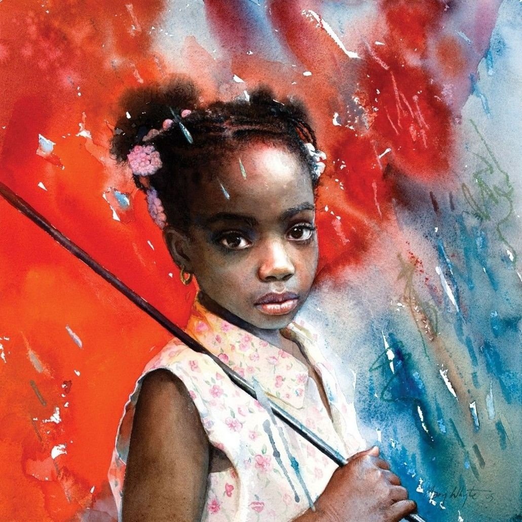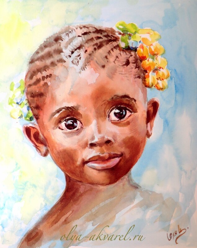 Портрет темнокожая акварель