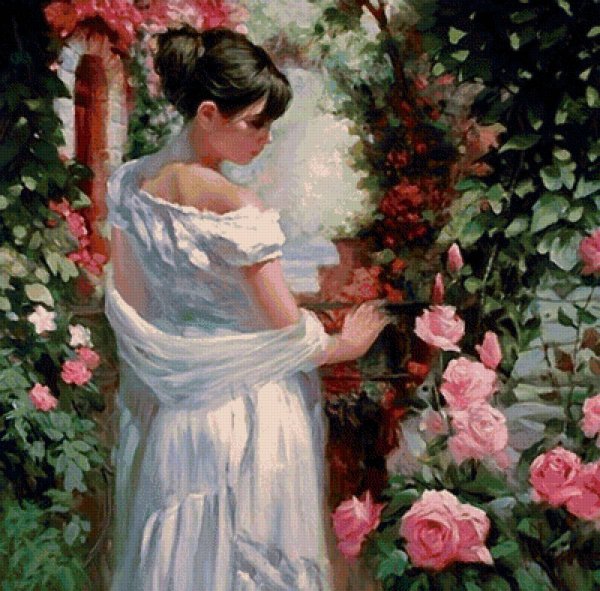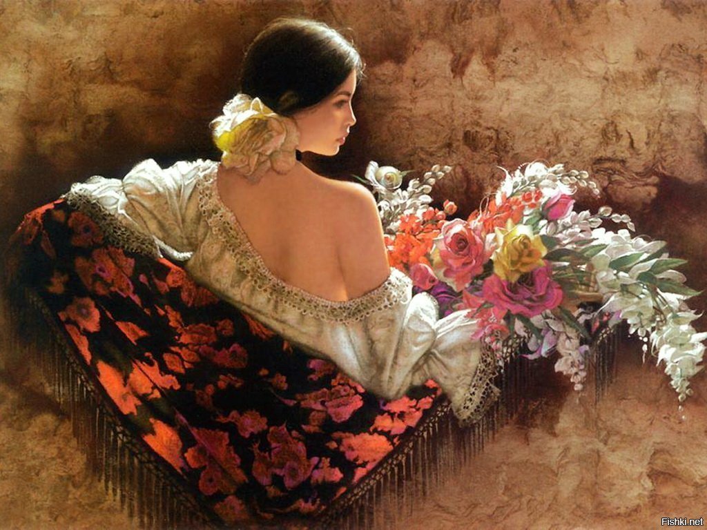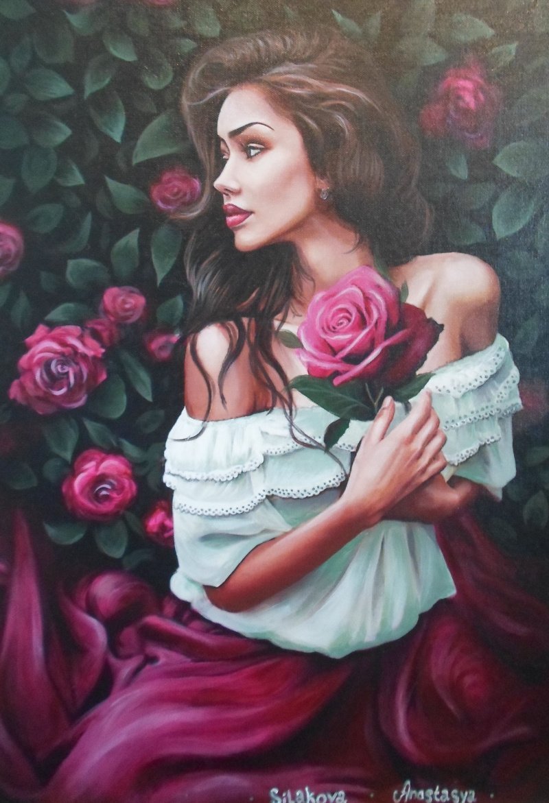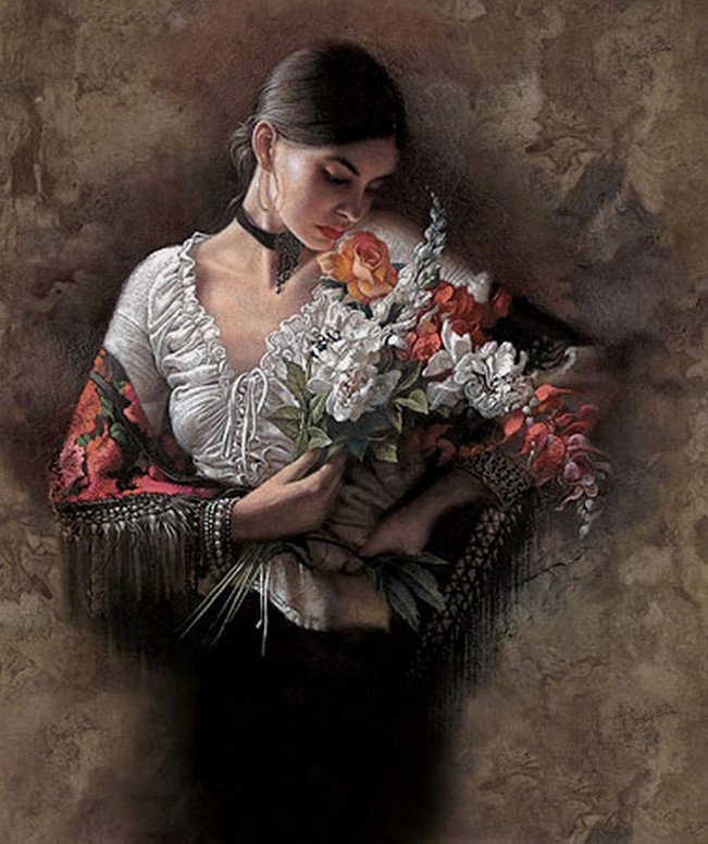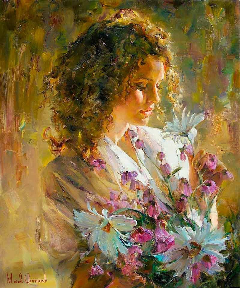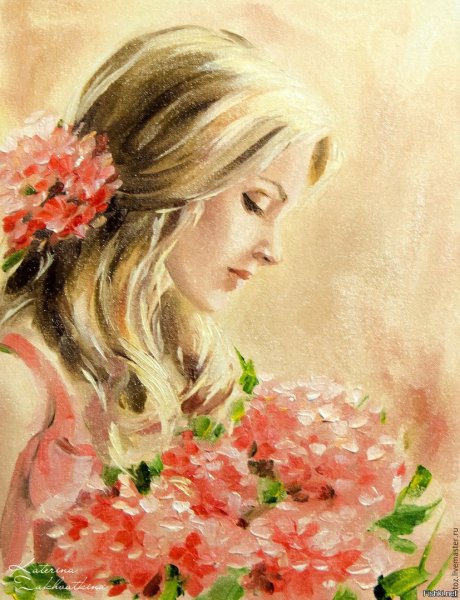 Девушка и цветы живопись